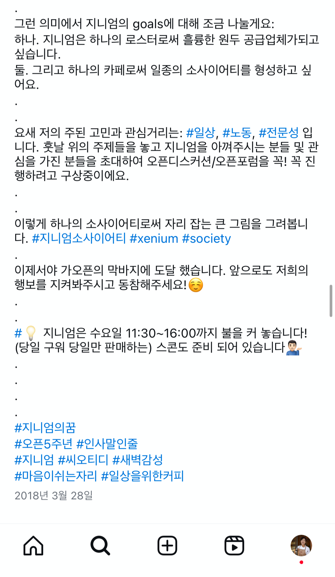 사람이 오지 않아 말할 수 있는 곳이 없어 그는 인스타그램으로 자신의 생각을 말하기 시작했다. 그리고 놀랍게도, 그 글을 보고 지니엄에 찾아주는 사람이 한 두 사람씩 등장하기 시작했다.