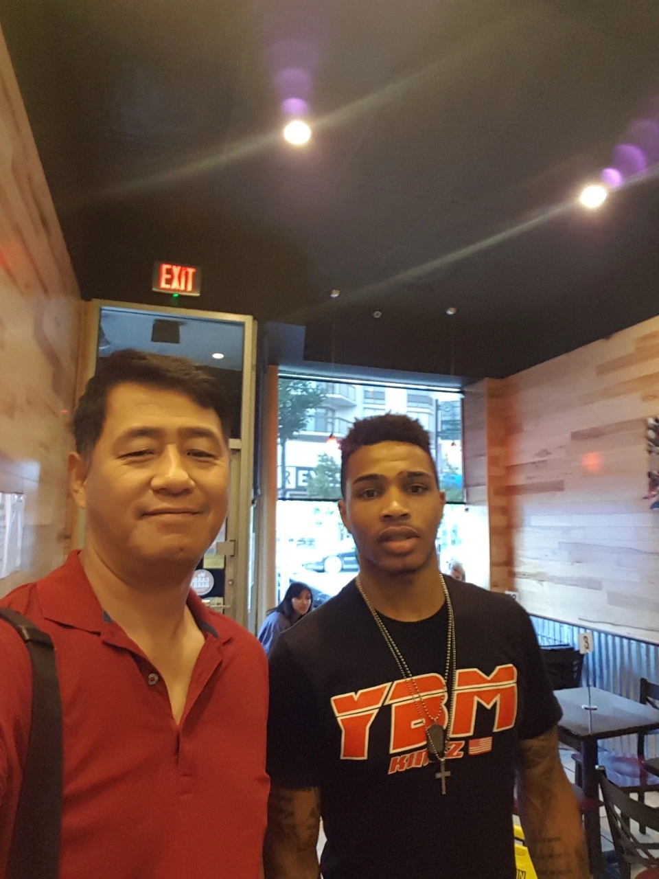 그날은 약속시간이 자신이 연습하는 시간이라 해서 그가 훈련하는 체육관으로 갔다