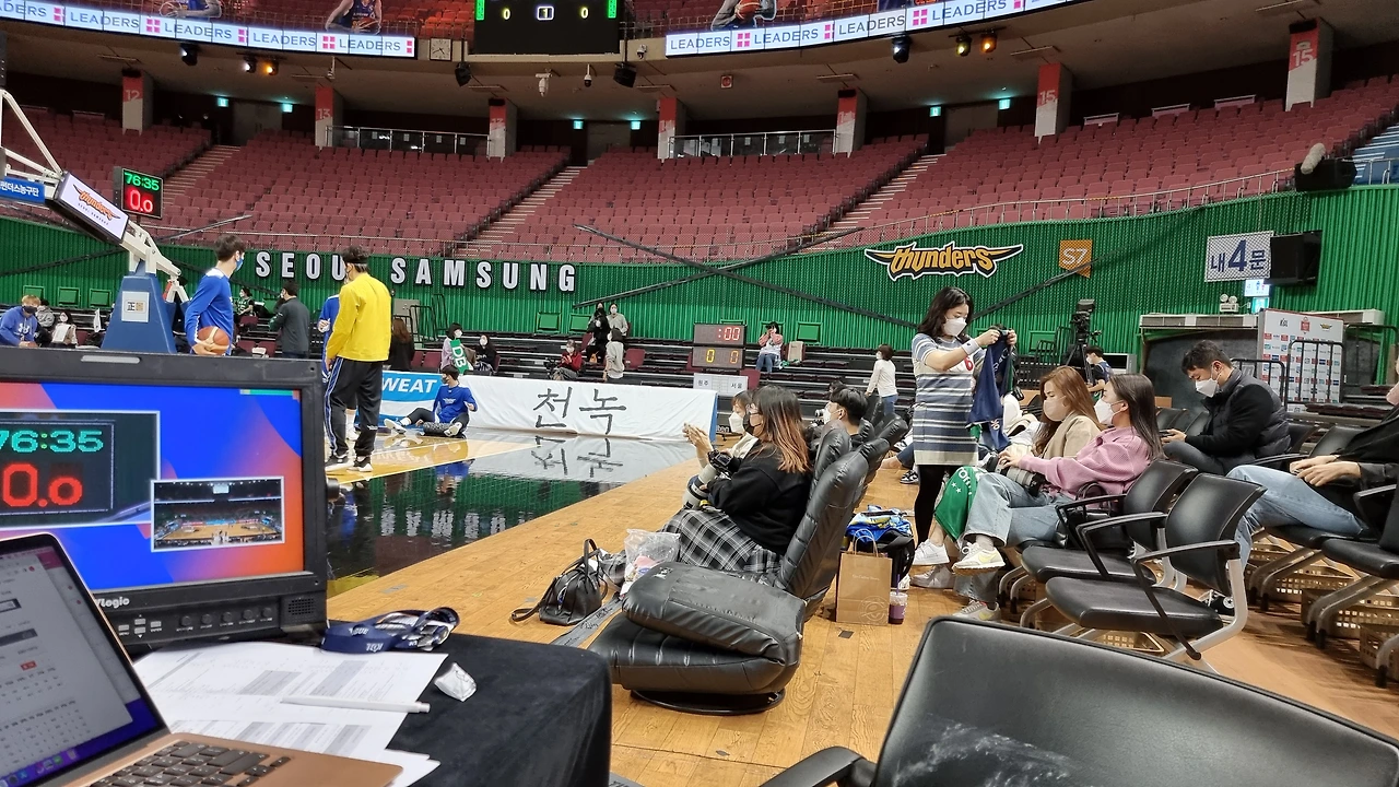 전에 한번 허웅의 경기 후 인터뷰를 할 때는 몰려든 인파에 중계 관련 전선의 코드가 뽑혀 목소리가 전혀 중계석에 들리지 않은 방송사고가 난 적도 있었다