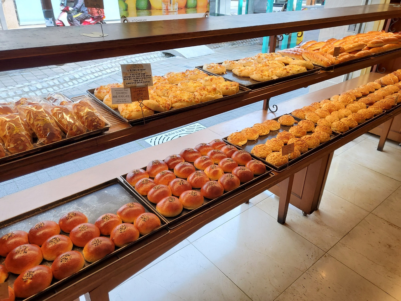시그니처 메뉴인 크림치즈빵 이외에도 소시지빵, 피자빵이 유명하다. 모두 다 먹고 싶지만, 다음을 위해서 좀 참아본다.