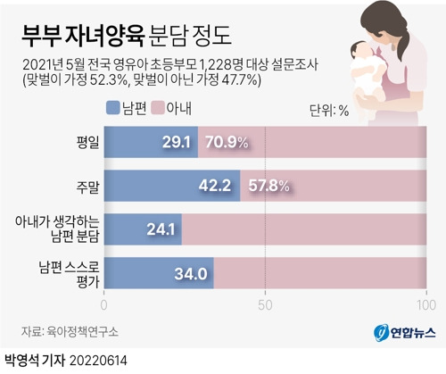 하지만, 육아는 아직도 남성보다 여성에게 큰 부담이다.
