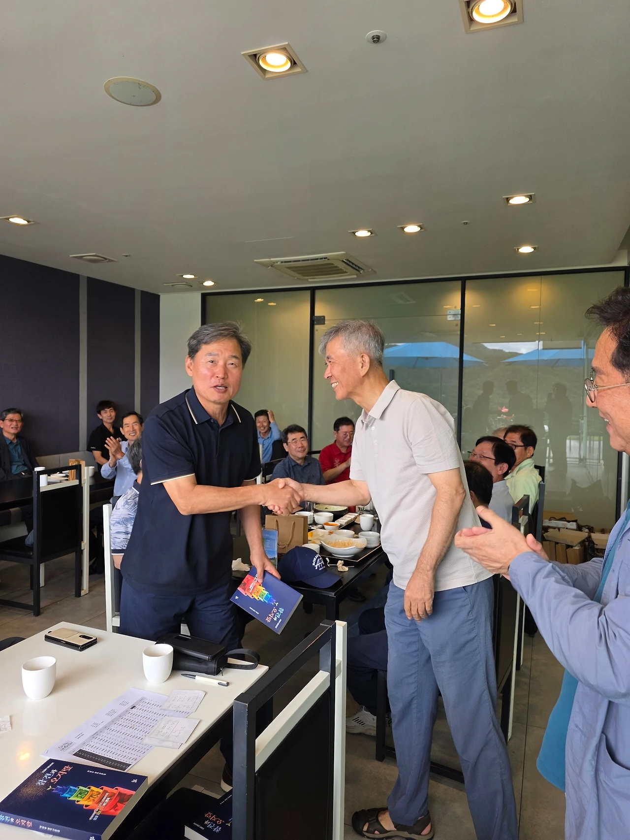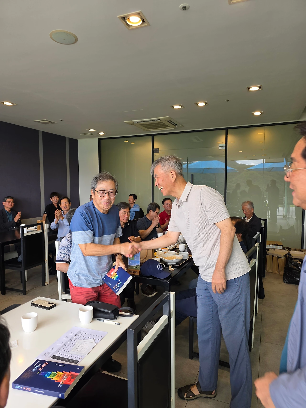 하이라이트는 역시 저녁 뒤풀이. 클럽하우스 연회장은 맛깔난 음식과 왁자지껄한 웃음으로 뜨겁게 달아올랐다. 롱기스트, 니어리스트, 다 버디, 우수·최우수 플레이어가 호명될 때마다 갈채와 탄성이 이어졌다. 영광스럽게도 졸저 『참견과 오지랖』도 몇 권 강제 독자들의 손에 전달되었다. 언젠가 단톡방에 독후감이 올라올 기적의 순간을 떠올리니 설레지 않을 수 없었다.