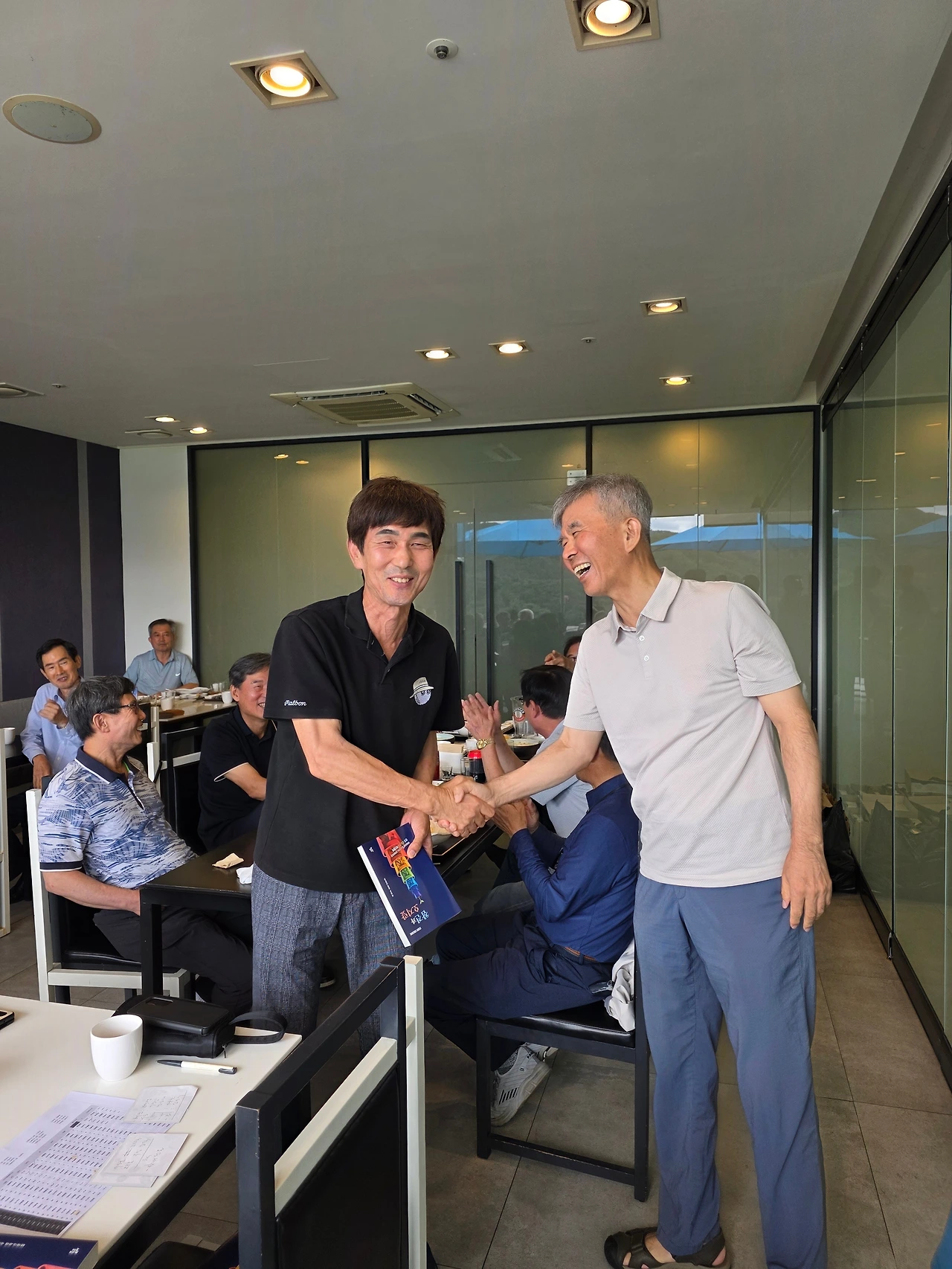 HJ는 스크린 잘 안친다면서도 장타와 내공을 뽐냈다. YK는 연습스윙을 하다 담이 결렸음에도 끝까지 집중해서 우승 스코어를 차지했다. 나는 스크린에 자신 있었지만 체력 한계로 후반은 나락까지 떨어졌다. 정와회 선수들이 필드와 스크린을 가리지 않는 전천후 프로임을 새삼 실감했다.