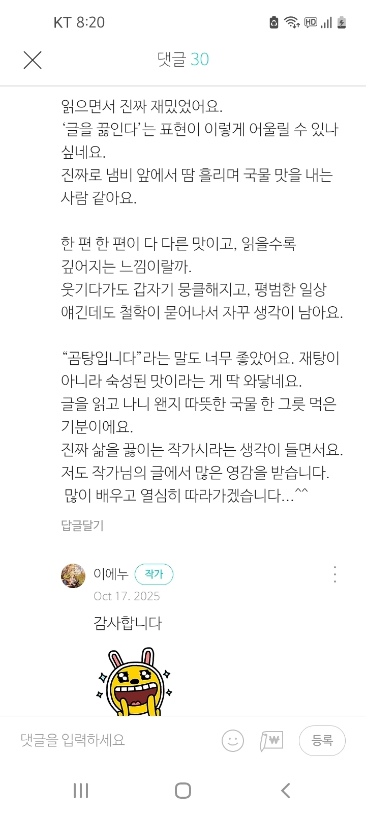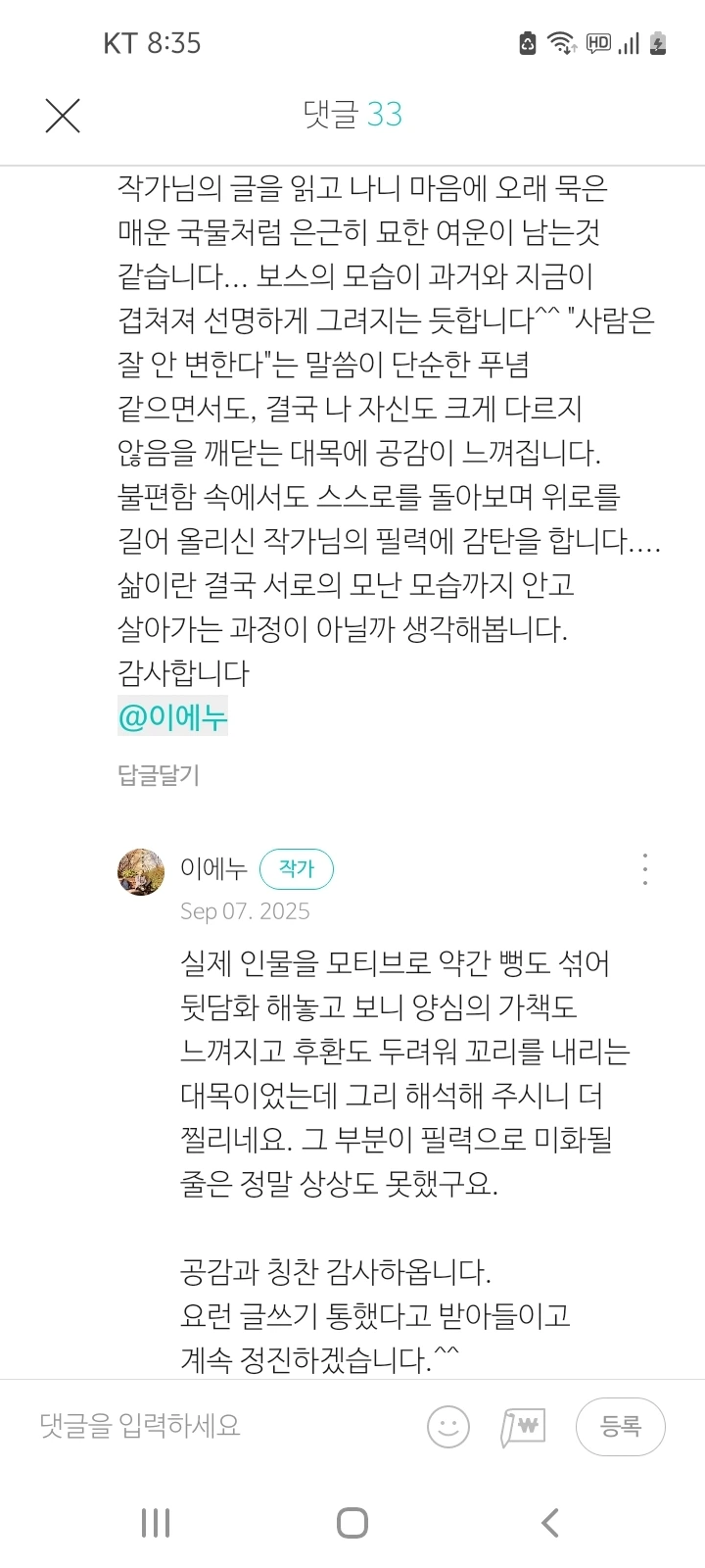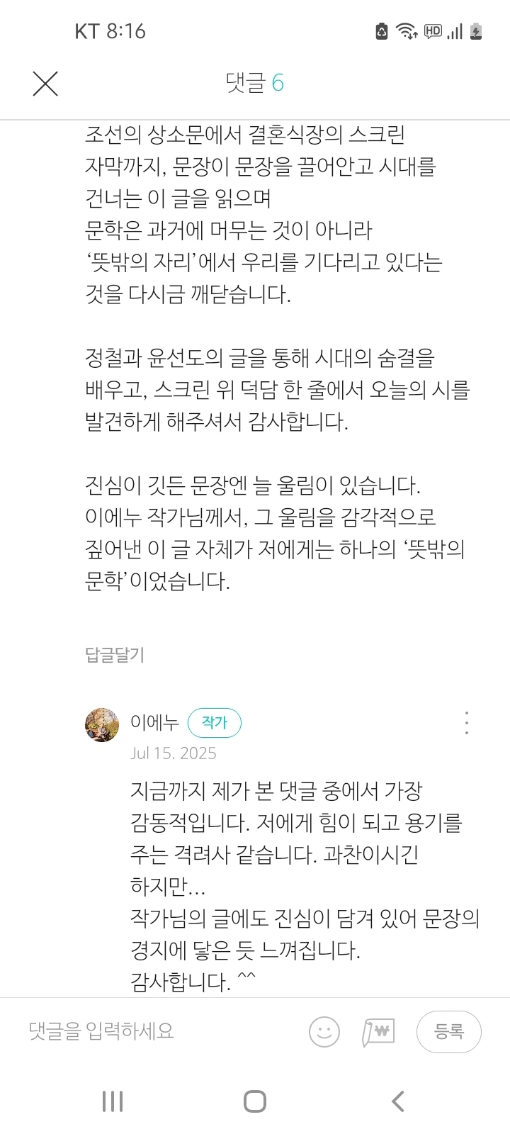 제가 쓴 허접한 글에 빛나는 댓글들이 차고 넘칩니다. 그 어떤 글보다 진심과 온기가 가득한 응원가이고 격려사 같습니다.