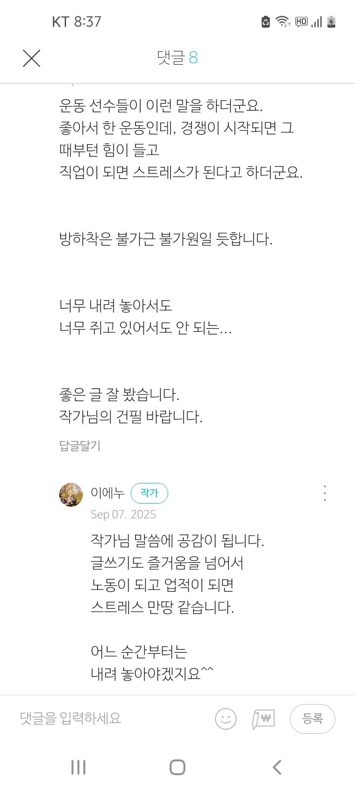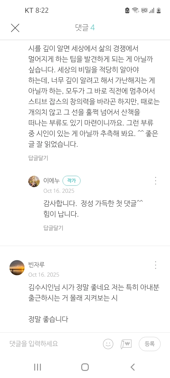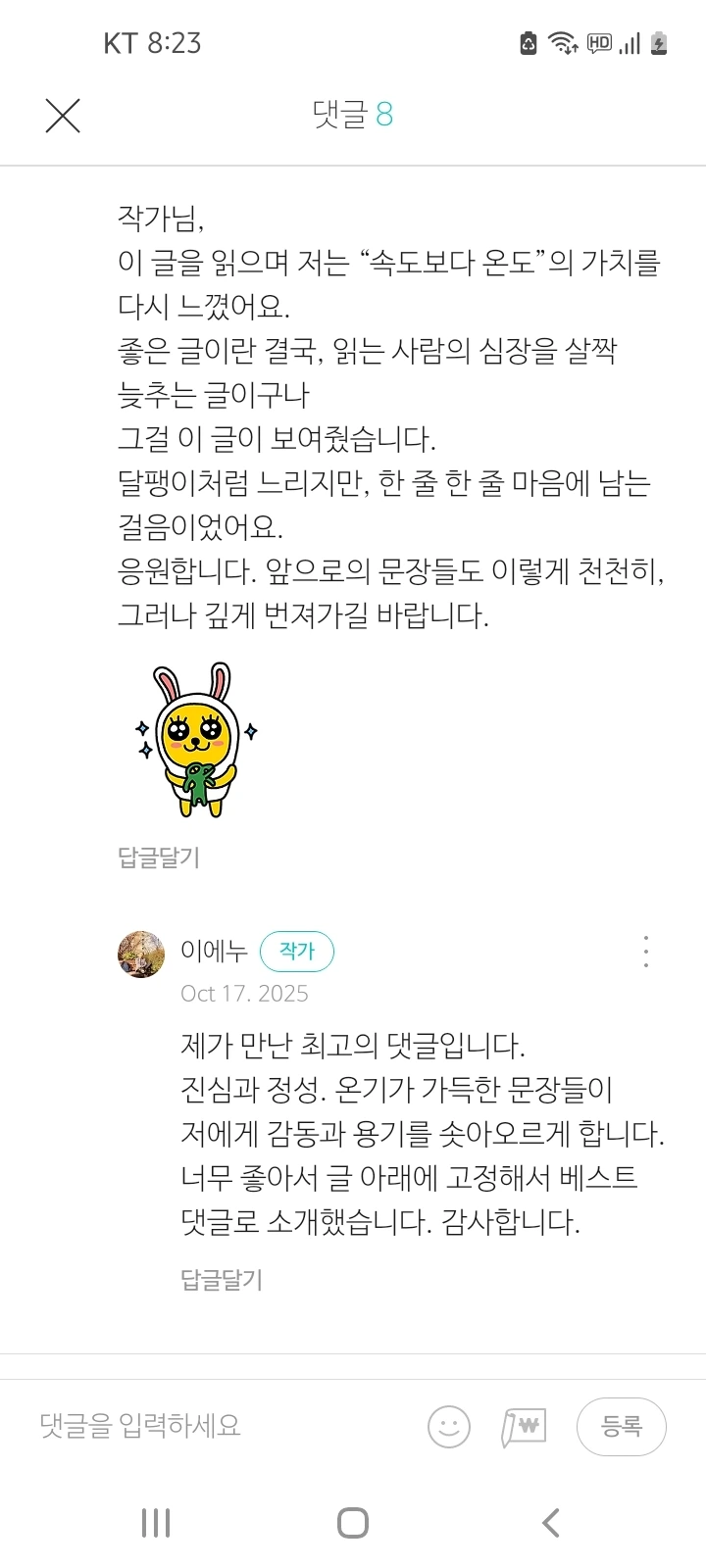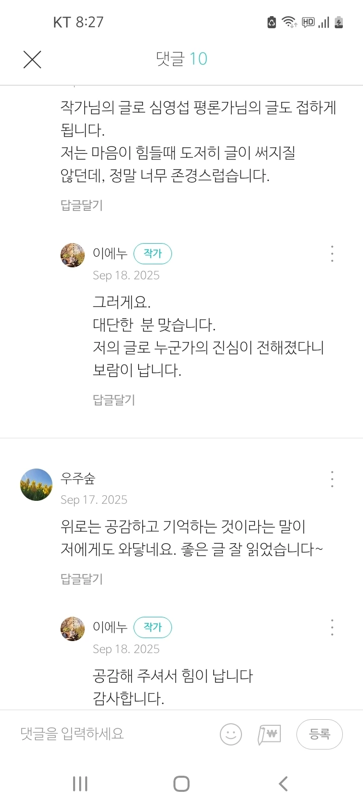 제가 쓴 허접한 글에 빛나는 댓글들이 차고 넘칩니다. 그 어떤 글보다 진심과 온기가 가득한 응원가이고 격려사 같습니다.