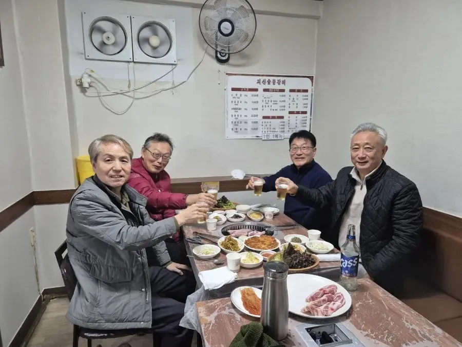 12시쯤 괴산터미널에 도착하니, 용조와 다른 두 친구가 기다리고 있었다. 문경에서 샤인머스캣 농장을 하는 동희와 포항 구룡포에서 올라온 희창이. 오랜만에 만난 반가움에 웃음꽃이 만발했다. 괴산 읍내에서 삼겹살 정식을 나누며, 옛 추억과 근황을 주고받는 시간은 금세 지나갔다.
