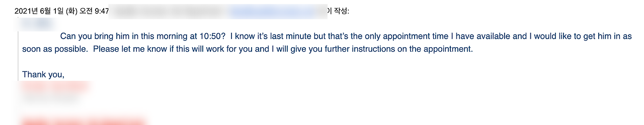 그런 내 마음을 신이 들으신 건지, 때마침 입양 센터에서 'Day3 follow up'이라는 제목의 이메일이 왔다.