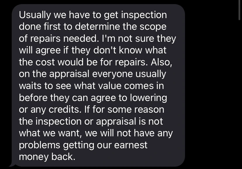 집 매매가에 포함되는 금액이기 때문에 집 매수가 정상적으로 이루어지면 몇 퍼센트 산정됐는지는 문제가 되지 않다. 그러나 집 구매 과정은 home inspection 등 어떤 변수를 통해 거래가 틀어질지 모르므로, 나중에 오퍼가 수락되고 나서 괜히 선납 계약금을 많이 넣었다는 생각이 들었다.