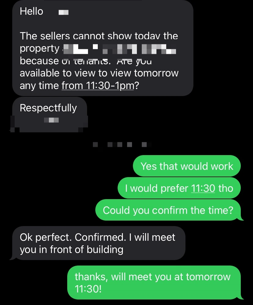 약 30분 후, request를 받은 부동산 중개인으로부터 전화가 왔다.