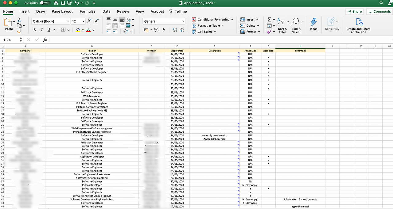 특히 처음에는 비자 지원과 상관없이 아무 곳이나 막 지원하는 정말 무식한 방법을 택했다면, 나중에는 비자 지원 없는 곳은 알아서 거르게 되고, 또 지원 여부에 따른 결과 또한 한눈에 파악할 수 있어서 좋았다(그래도 대부분 다 떨어지긴 했다).