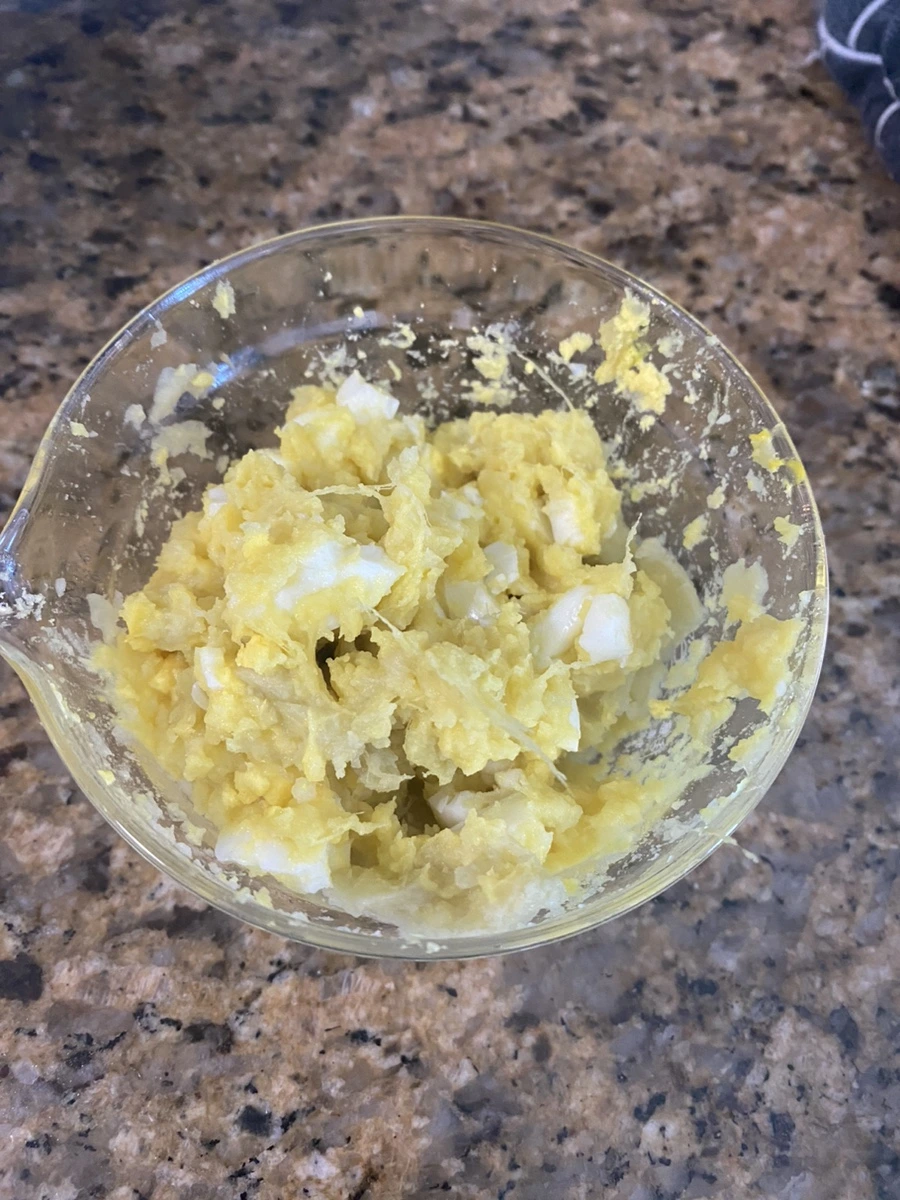 일단 삶은 달걀과 고구마만 준비해 놓으면 나머지는 5분도 채 안 되어 준비가 가능하다. 감자 샐러드보다