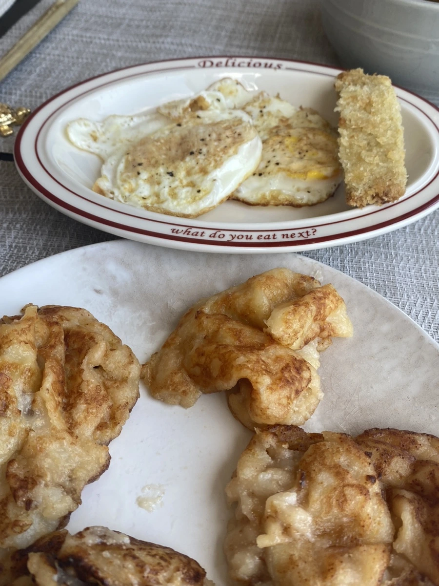 감자, 밀가루 비율을 9:1로 잡아서 거의 떡처럼 프라이팬에 들러붙었다 (혹시 이 메뉴 도전하시는 분들은 감자:밀가루 비율을 1:3으로 잡는 걸 추천드린다). 그래도 맛은 좋았다.