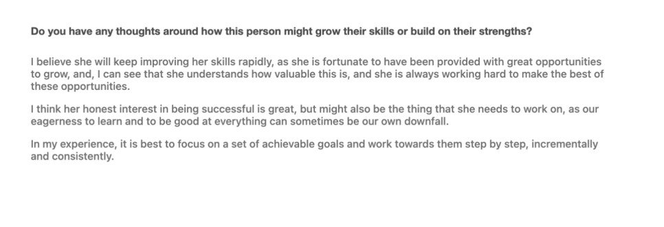 Do you have any thoughts around how this person might grow their skill or build on their strengths?