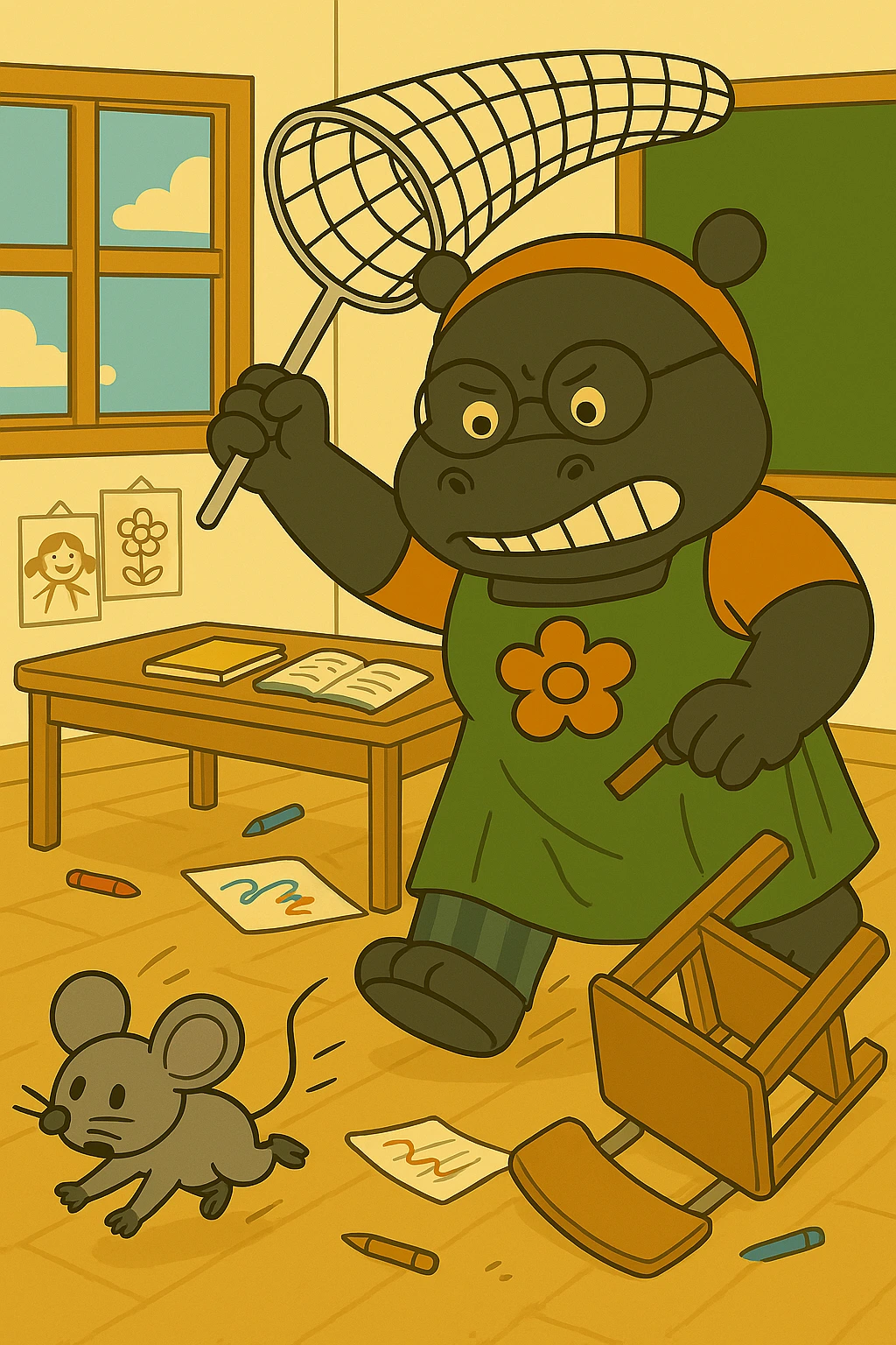 쥐가 슬금슬금 몬스터 선생님 머리 위로!