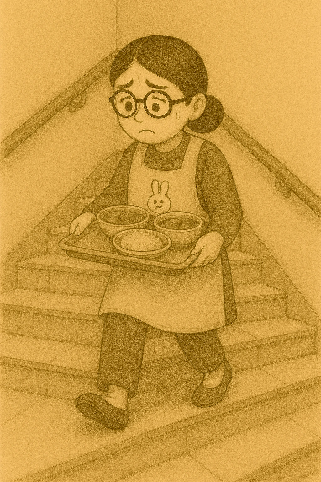 "조리실이 5층이라 힘들지? 원래 무거운 걸 오르내리는 게 제일 고된 일이야."