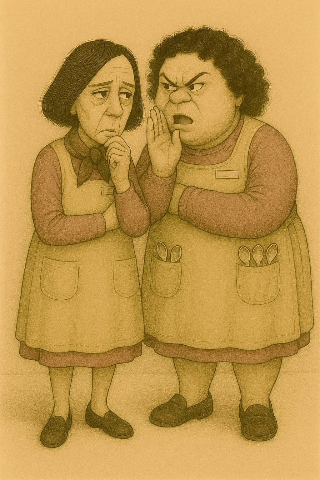 다시 발걸음을 옮기자, 두 선생님은 눈빛을 교환하며 앞치마 주머니에서 수저를 꺼내 슬며시 다른 곳에 감췄다.