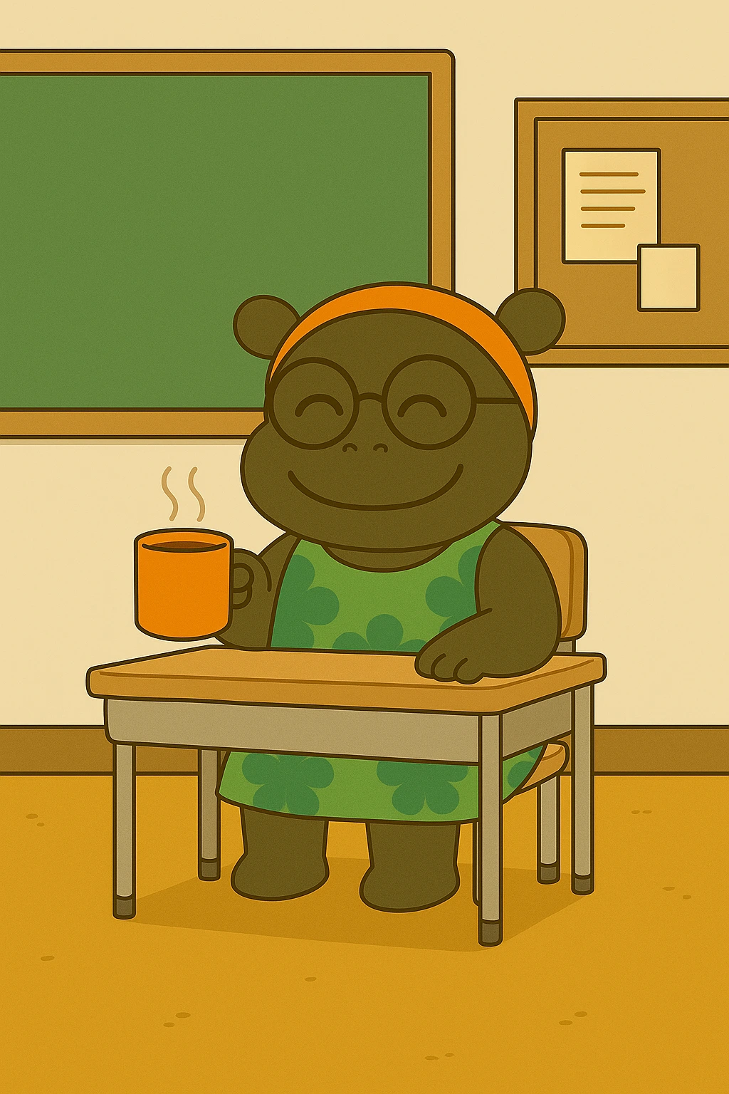 엔젤 선생님은 커피를 마시며 쉬고,