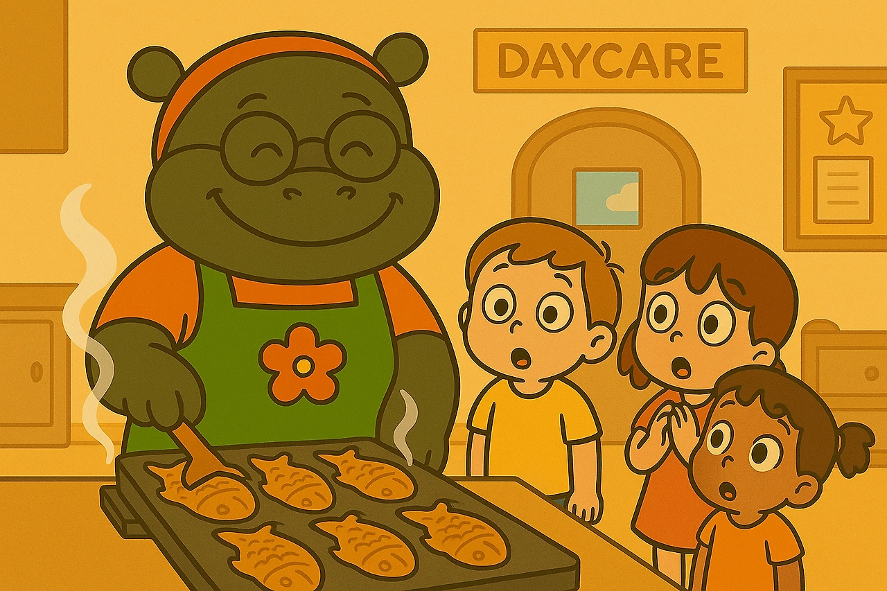 그래서 몬스터 선생님은 붕어빵을 아주 많이 만들었어요.그리고 좋은 생각이 떠올랐습니다.