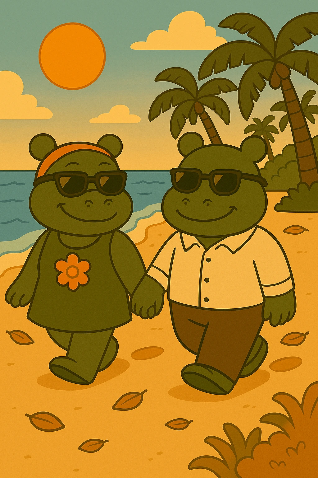 시원한 바닷길을 걸으며 손을 꼭 잡고,