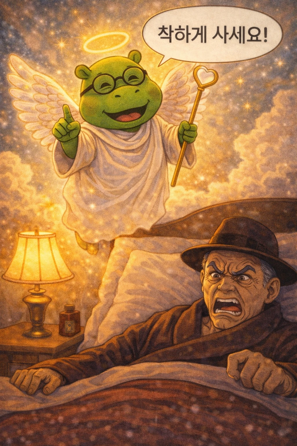 주인아저씨의 꿈에 천사가 나타났습니다.