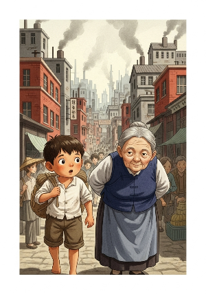 할머니와 손자는 마을을 떠나 도시로 향했어요.