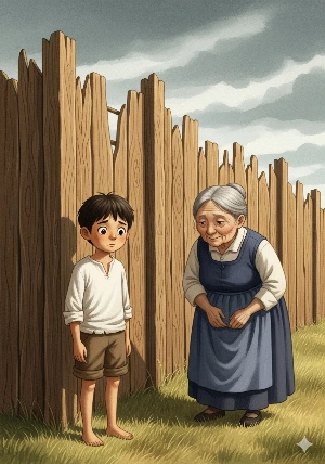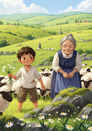 옛날 옛적에, 넓은 들판이 있는 마을에 한 할머니와 손자가 살았어요.