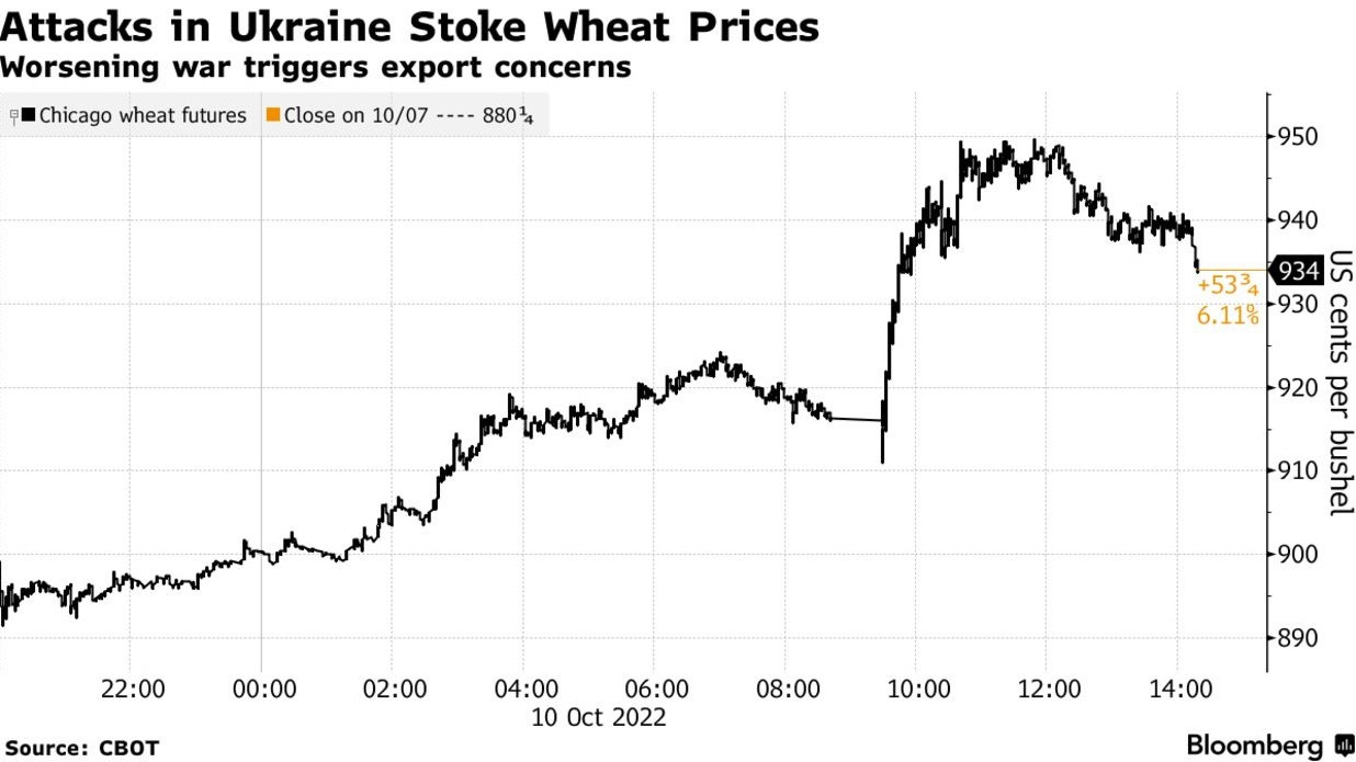 세계 밀 수출량의 10퍼센트, 옥수수 14퍼센트, 해바라기유 약 절반을 담당하고 있던 우크라이나에 전쟁으로 주요 곡물 가격은 치솟기 시작했다.