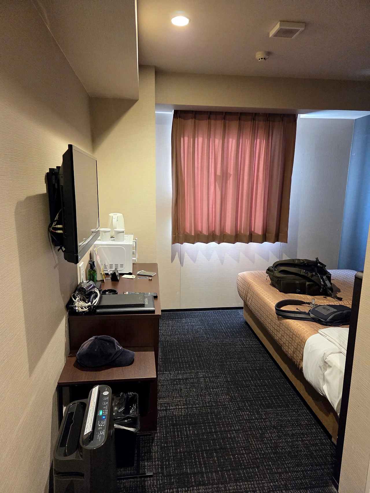 혼자 사용하기 적당한. 그래도 창문을 조금이나마 열 수 있어서 좋았다. 역 주변이라서 시끌시끌하지만 아주 불편할 정도는 아니다.
