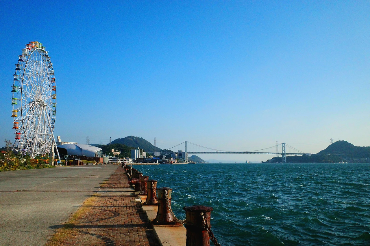 소방청, 경찰청을 지나니 넓은 해상공원이 보이기 시작했다. 가라토지역 사진에 자주 보이던 관람차도 멀리 보이고 간몬대교도 멀리 보이기 시작했다.