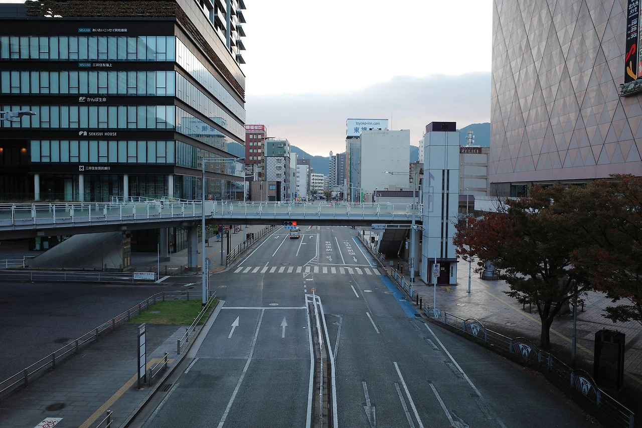 고쿠라역에서 열차를 타고 시모노세끼역까지 이동한다. 이른 시간이어서 그런지 역 주변으로 사람들도 없고 자동차도 많이 보이지 않는다.
