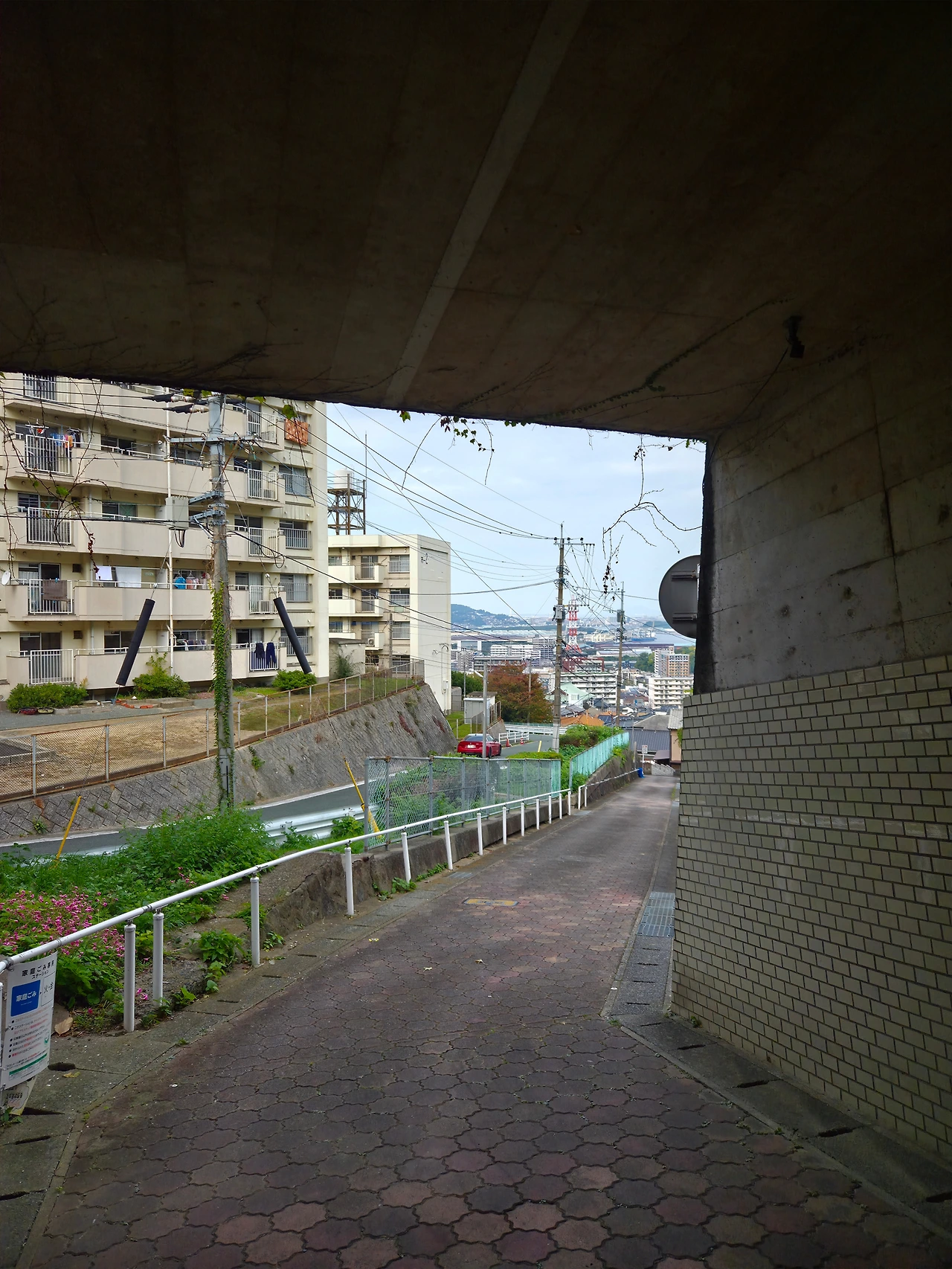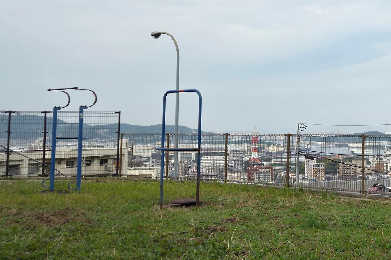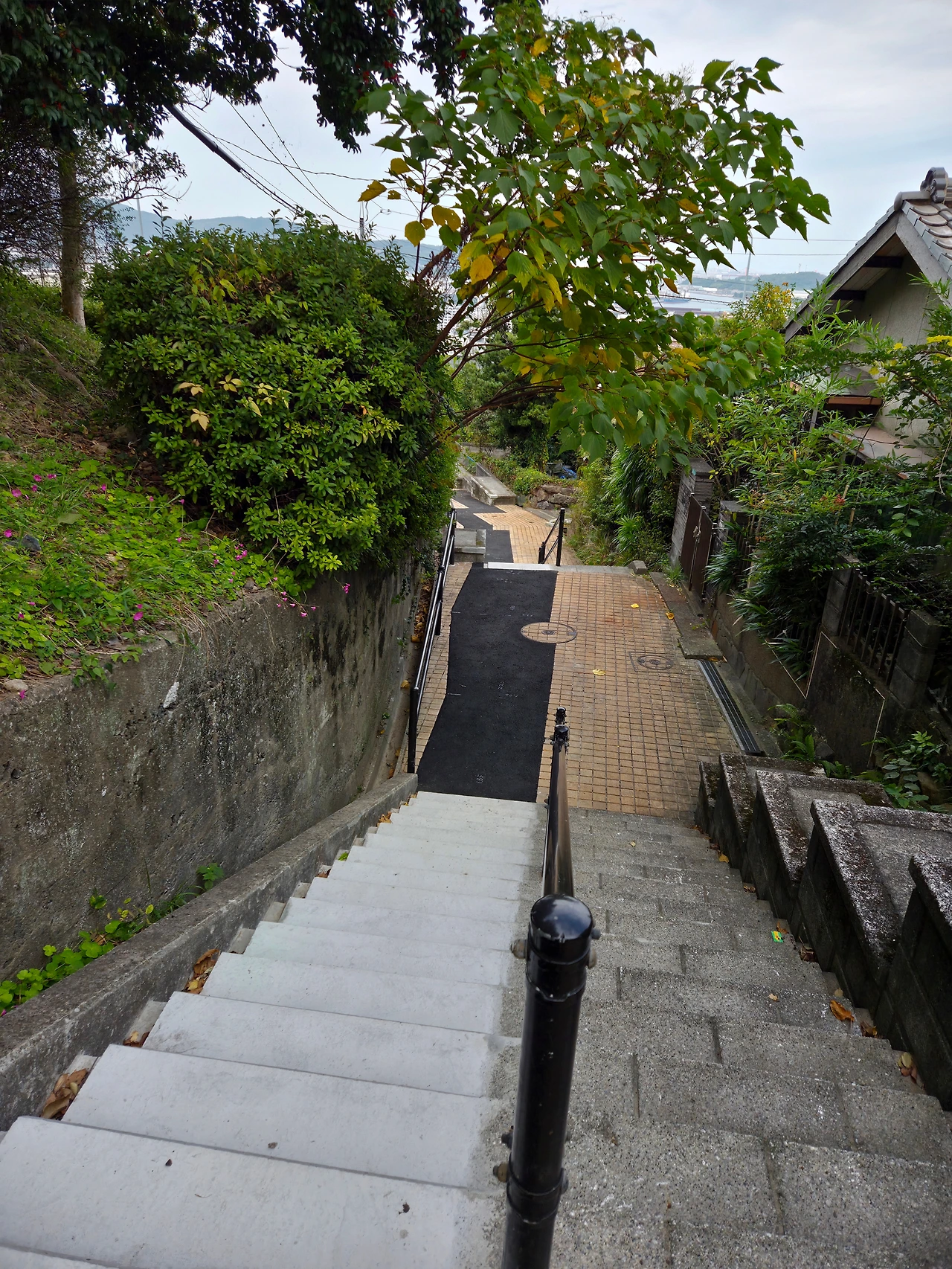 평지가 나오고 옆에 작은 계단을 오르면 작은 공원? 이 나왔는데 풀도 많이 자라 있고 이용하는 사람이 적은 지 방치된 느낌. 여기서도 바다가 보인다. 멀리 기계소리가 들리고 자동차 소리가 들려오는 거로 봐서는 케이블카 타는 곳이 근처인 것 같다