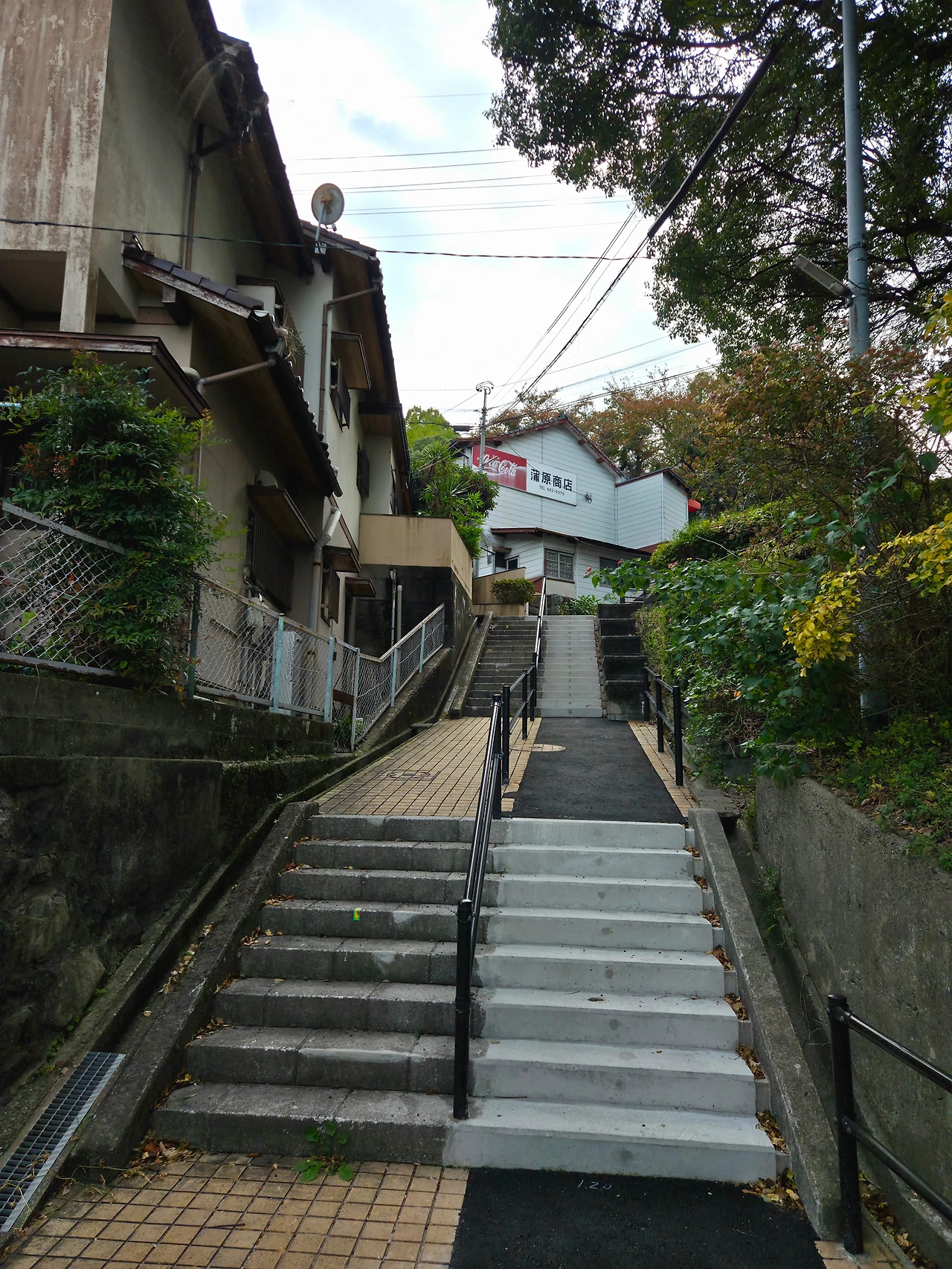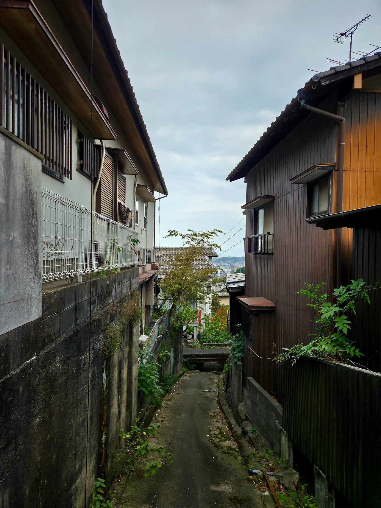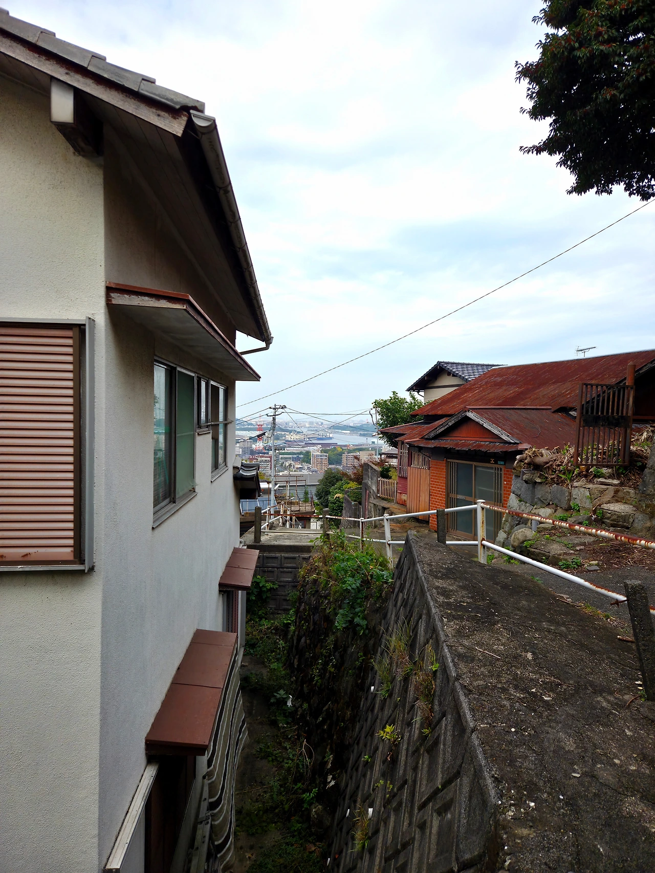평지가 나오고 옆에 작은 계단을 오르면 작은 공원? 이 나왔는데 풀도 많이 자라 있고 이용하는 사람이 적은 지 방치된 느낌. 여기서도 바다가 보인다. 멀리 기계소리가 들리고 자동차 소리가 들려오는 거로 봐서는 케이블카 타는 곳이 근처인 것 같다
