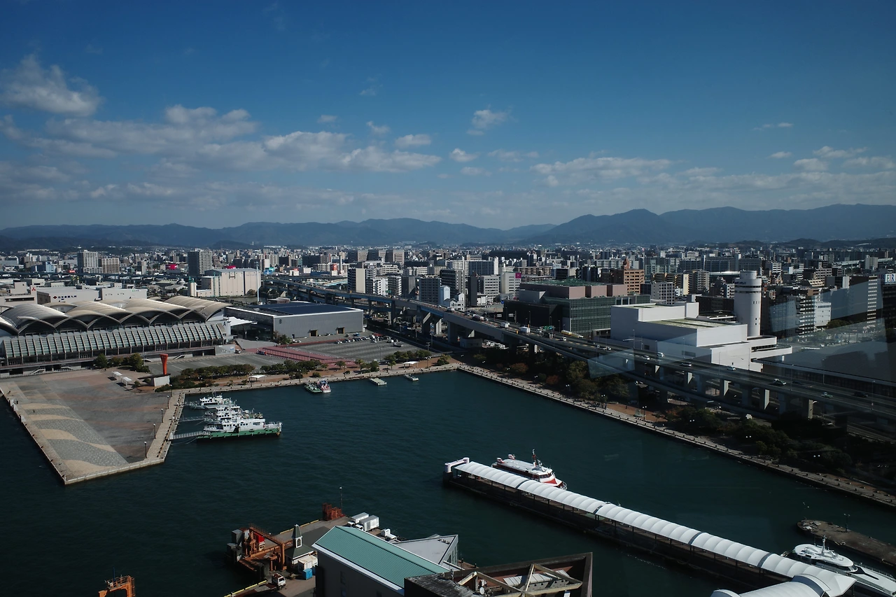 도착해서 처음 눈에 들어온 것은 정박해 있는 여객선과 포트타워, 후쿠오카가 바다에 인접한 도시 여서 그런지 이번여행은 바다를 원 없이 보고 있는 거 같다.