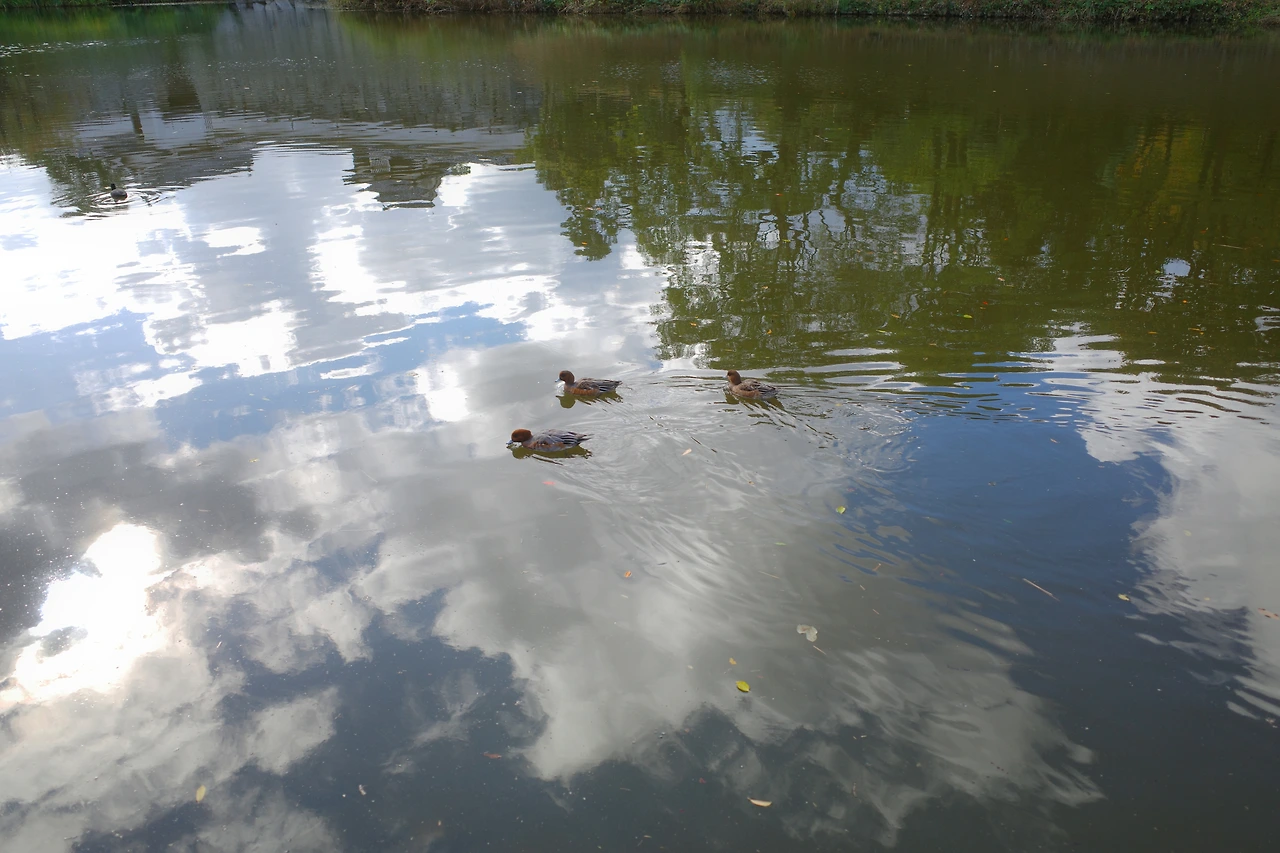 오른쪽으로 청둥오리를 보면 나란히 걸어 목적지인