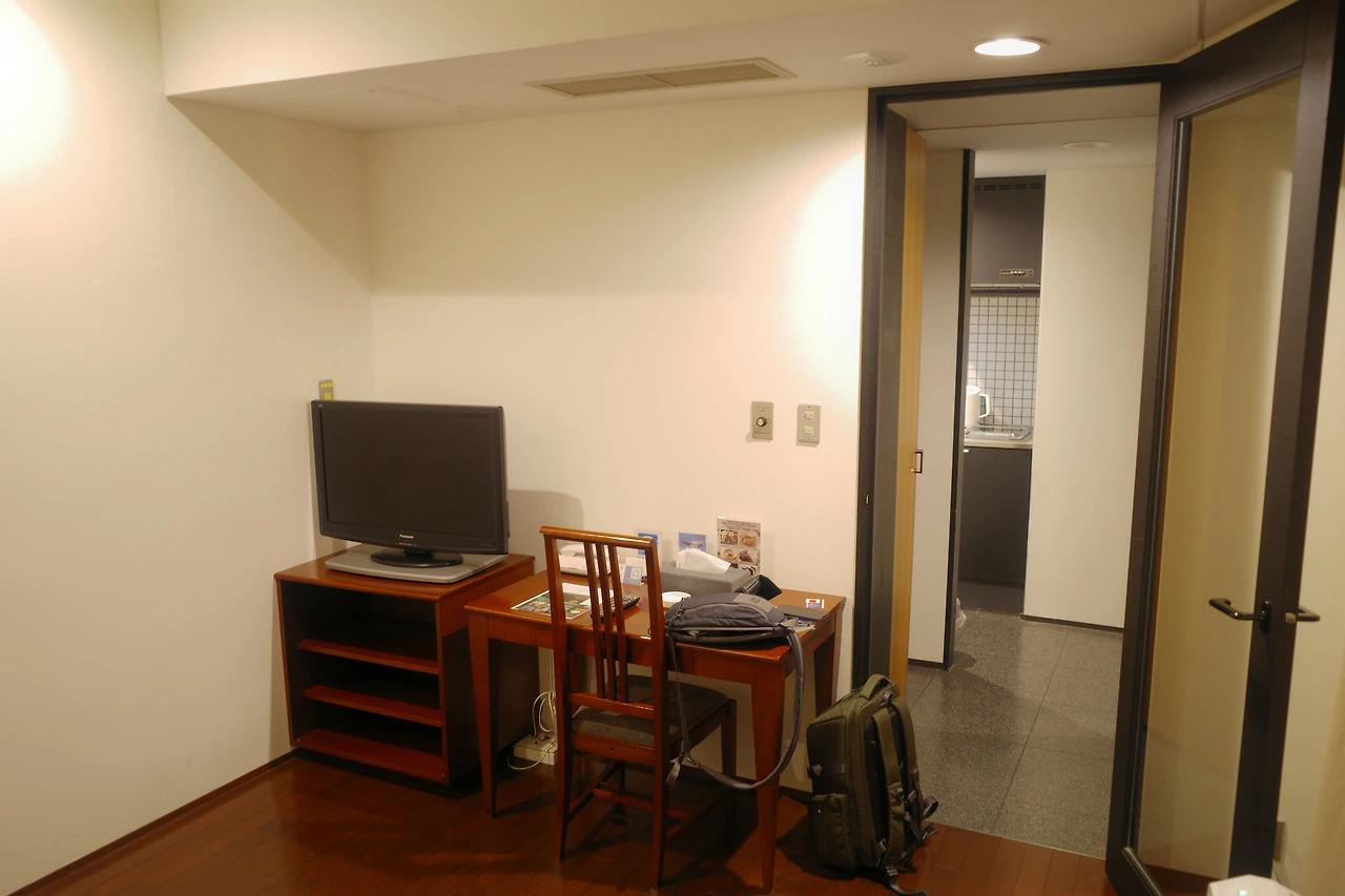일본의 숙소라고 하면 좁은 호텔에 대한 이미지가 있지만 다리 품이 늘어날수록 숙소의 평수는 늘어난다. 보통 호텔이 13 제곱 정도이면 이곳은 43 제곱 정도 된다. 1박에 십만 원 이하면 괜찮은 가성비라 생각이 된다.