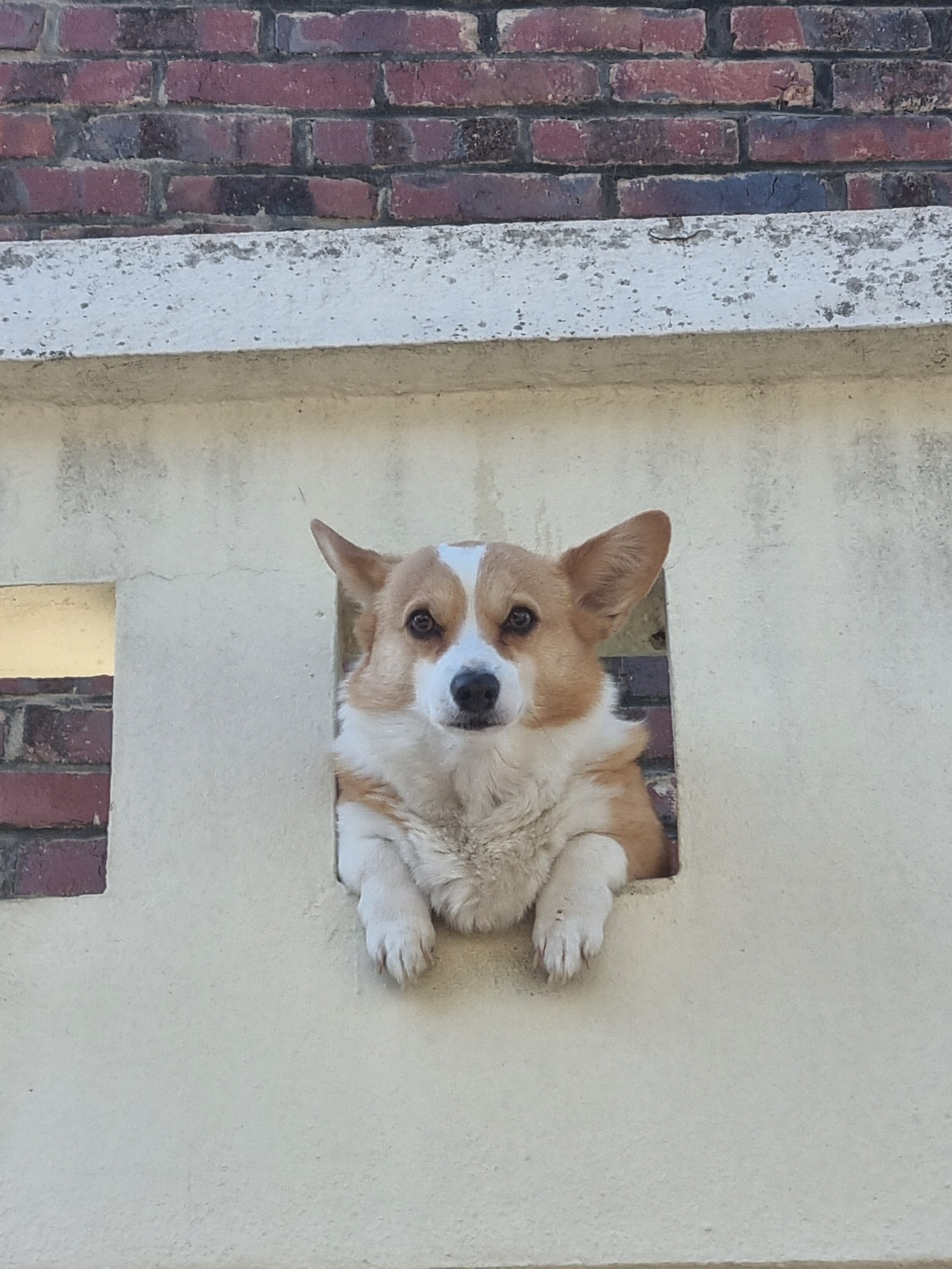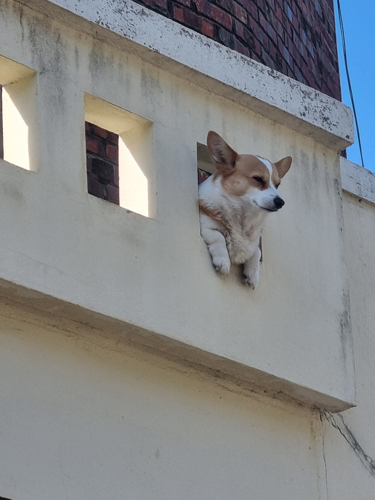 어느 날은 우연히 고개를 들어 하늘을 보았는데 이층 주택에서 아주 귀여운 강아지 한 마리가 구멍에 얼굴만 쏙 내밀고 세상구경을 하고 있었다. 너무나 반가운 마음에 가까이 가보았는데 그 사이 집으로 쏙 들어가서 인사를 하지 못해 아쉬움이 남아있었다. 그 강아지를 한번 더 만나고 싶은 마음에 그 집 앞으로 지날 때마다 강아지가 있는지 확인했는데 생각보다 만나는 건 쉽지 않았다. 그래서 더 보고 싶은 마음이 간절했다.