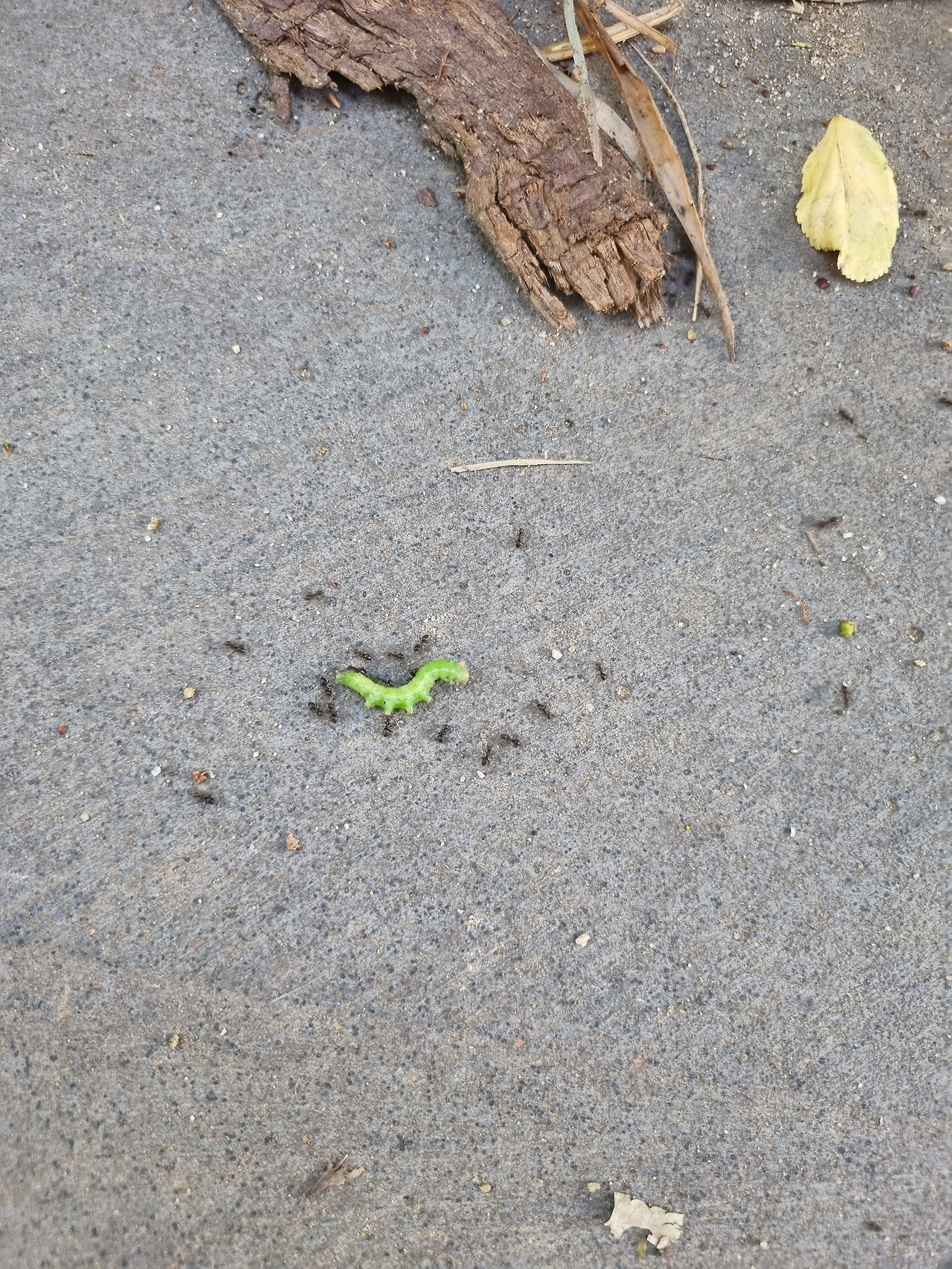 그날따라 행운의 여신이 함께 했는지 늘 다니던 길에서 예쁜 꽃이 내 눈에 들어왔다. 꽃이름은 모르지만 길가에 피어있는 들꽃무리와 노란색 민들레 군락도 너무 아름다웠다. 집 근처에 거의 다 도착했을 때 개미들이 모여있는 곳을 유심히 살펴보니 연두색 애벌레가 사투를 벌이고 있었다. 애벌레에게는 좀 미안했지만 나에겐 진귀한 풍경이라 사진을 찍었다. 대자연의 법칙 앞에서 인간도 자연의 일부일 뿐이라는 사실을 잠시나마 상기시켜주었다.