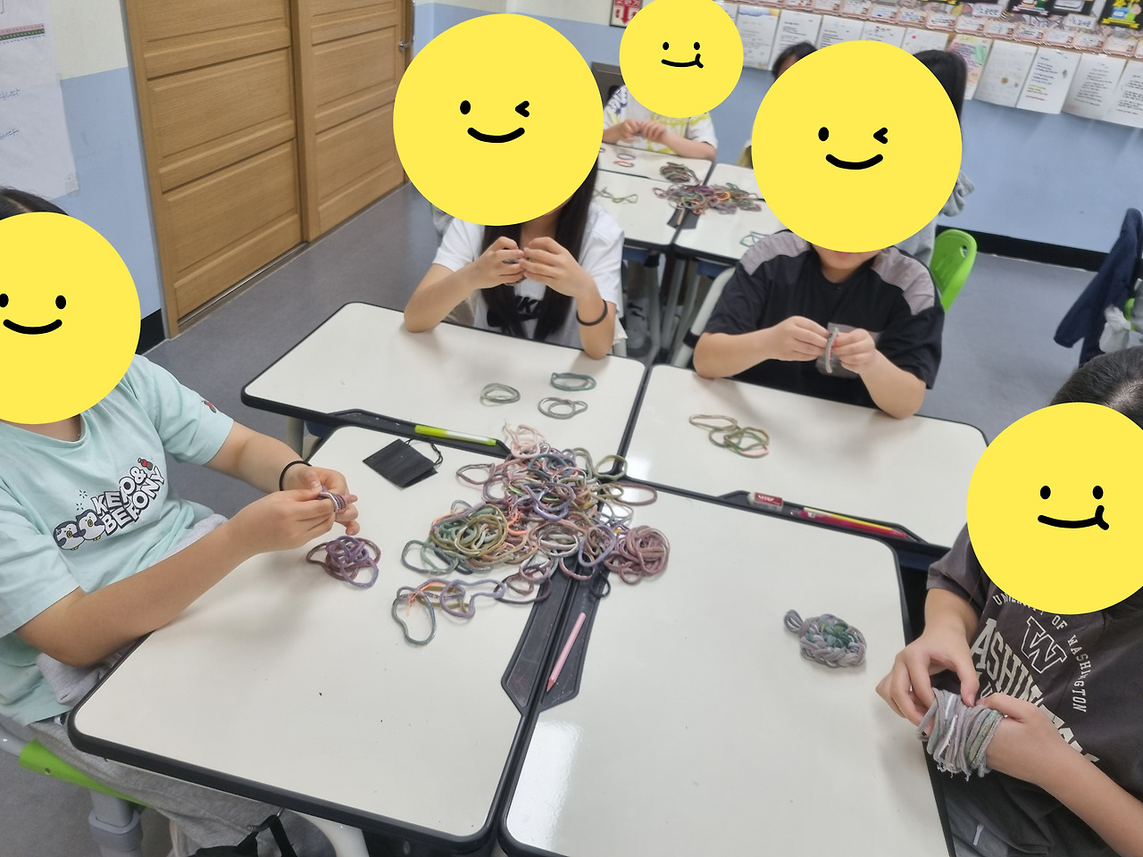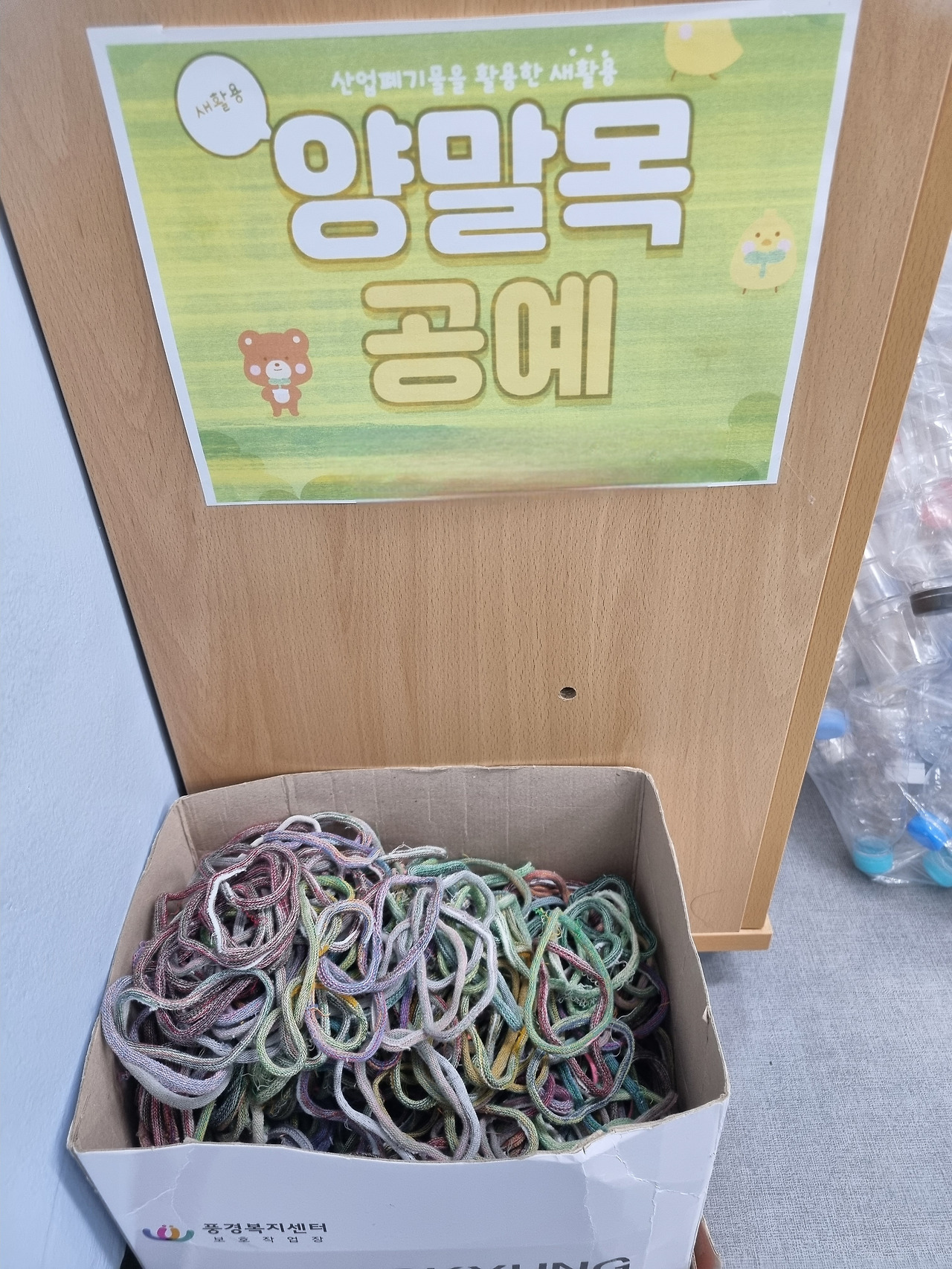 오늘은 양말목공예 첫 번째 시간이라 아이들이 많이 어려워했지만 수업이 끝나고 쉬는 시간에 자기들끼리 교실 뒤편에서 한번 더 해보려는 노력이 기특해 보였다. 냄비받침을 다 만들었다며 나에게 보여주었는데 조금은 찌그러진 모양도 귀여웠다. 냄비받침에서 점점 키워나가면 방석도 만들 수 있고, 키링이나 미니바구니에도 도전할 수 있을 것이다. 모양은 어설프지만 버려지는 쓰레기로 만드는 공예품에 자부심도 가지면 좋겠다.