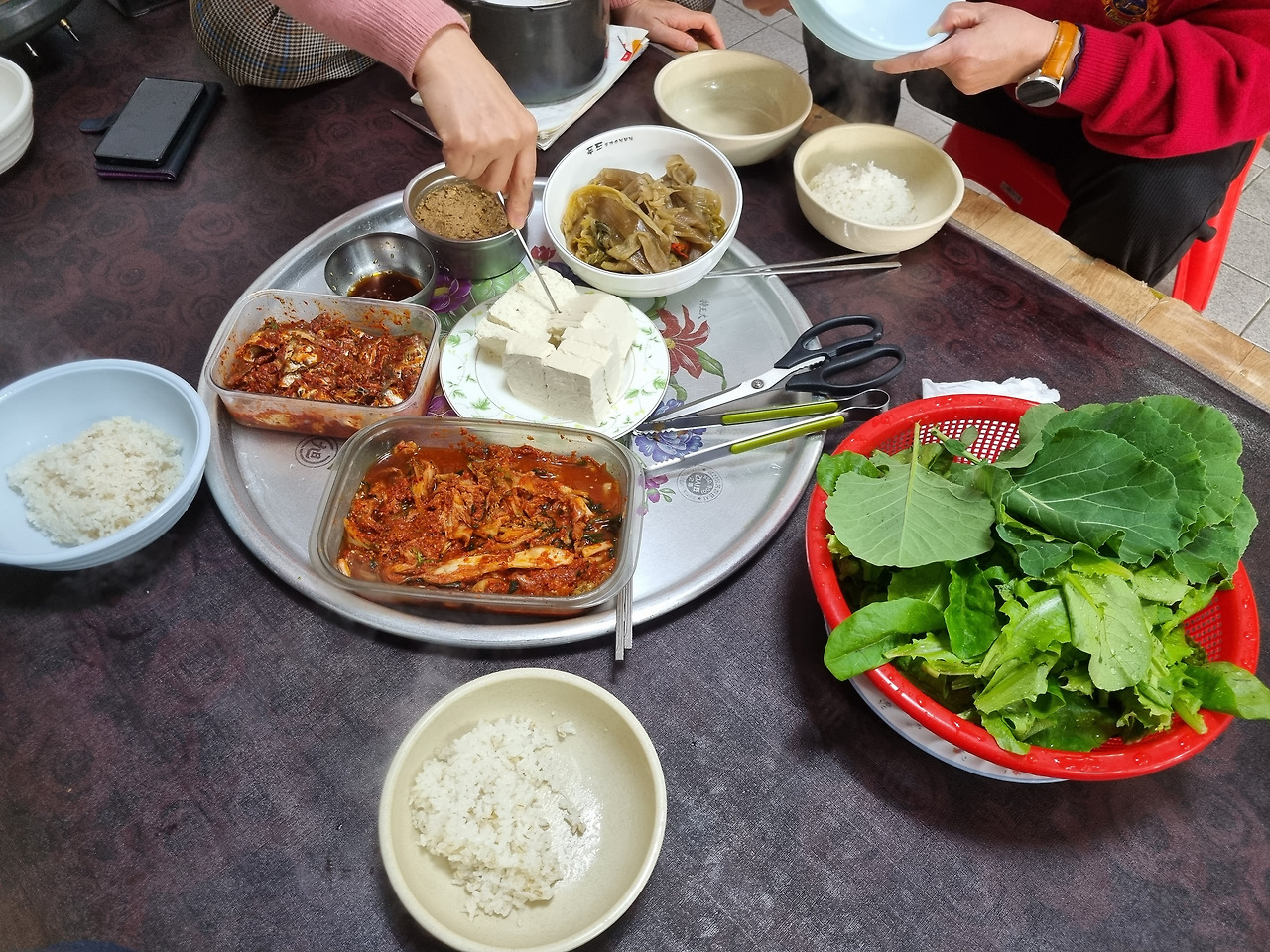 정말 맛있었다. 배가 고프기도 했지만 정말 맛있었다. 상추에 밥과 쌈장을 올려 한쌈 야무지게 먹으니 입안 가득 정겨움이 퍼졌다. 특히 묵은지 지짐이 너무 맛있었다. 묵은지를 씻어 별다른 재료를 넣지 않고 지지기만 한 것 같은데 어쩜 이렇게 감칠맛이 폭발할 수 있는 건지 참으로 대단하다.
