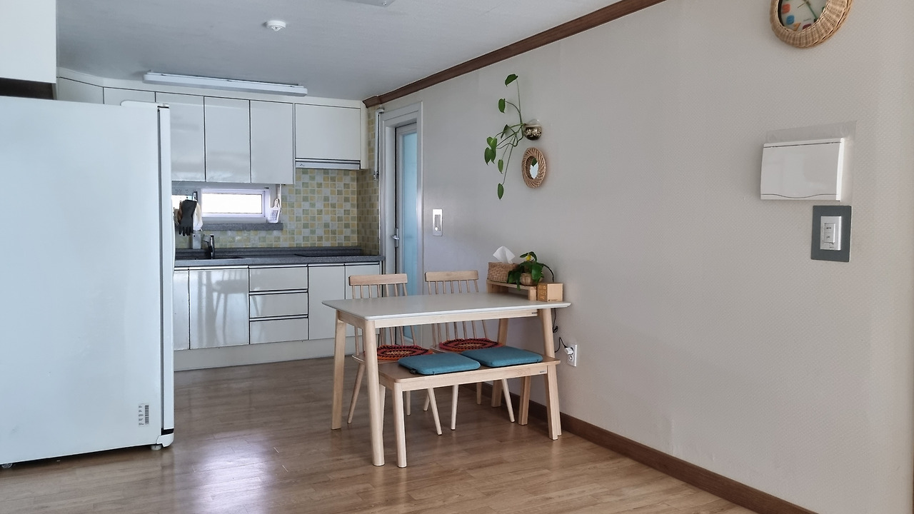 우리 집의 전체적인 분위기는 화이트와 우드이다. 나무에서 느낄 수 있는 정감 있고 따듯한 분위기를 좋아한다. 덕분에 라탄으로 만들어진 소품이 우리 집에는 많다. 라탄전등, 라탄바구니, 라탄휴지곽, 라탄거울 등이 우리 집 곳곳에 가득하다. 라탄은 왠지 여름에만 어울릴 것 같은 이미지가 있는데 우리 집 라탄소품은 사계절 내내 나에게 만족감을 준다. 라탄이 주는 편안함과 자연친화적 느낌이 너무 좋아 자격증까지 따버렸다. 식탁도 화이트 톤의 우드 느낌으로 바꾸니 집안 전체가 밝아진 느낌이었다. 식탁이나 소파를 바꾸는 결정도 오롯이 나의 몫이고 나의 취향만 반영되었다. 우리 집 남자들의 의견은 하나도 들어있지 않지만 언제나 그렇듯 별다른 불만이 없는 게 좋은 거라 믿고 싶다.