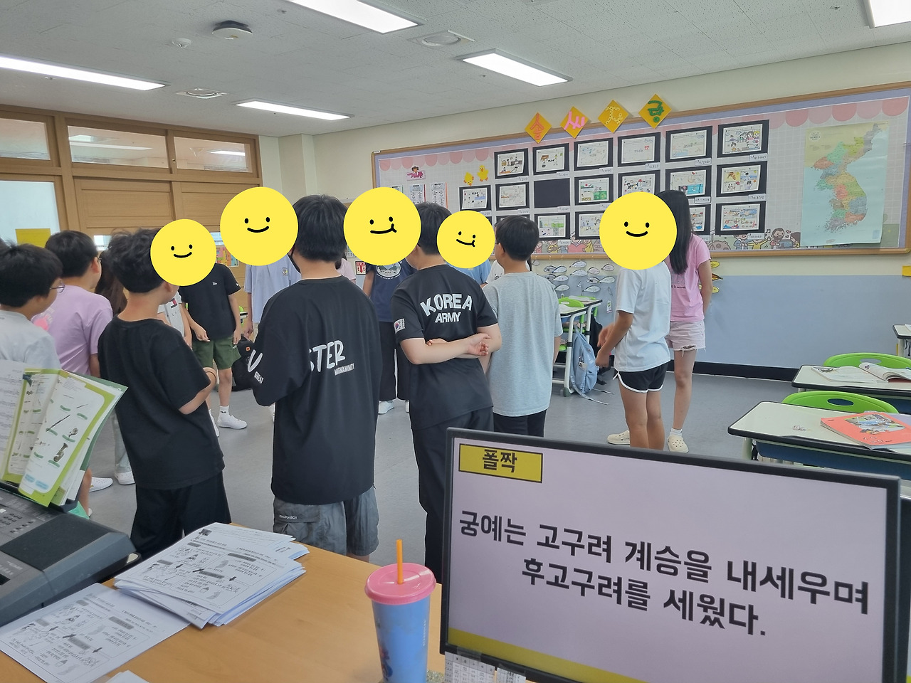 5학년 2학기 사회는 역사로만 이루어져 있고 외워야 할 것도 많아 수업 자체가 지루해지기 쉽다. 역사 동영상 시청, 역사 컬러링 북, 비주얼싱킹의 공책 정리도 하고 있지만 역사가 재밌는 내용이라는 것을 우리 친구들이 느낄 수 있도록 사회시간에 수업놀이를 자주 시도한다. 주로 개념을 정리할 때 놀이를 많이 적용하는데 모든 교과에 사용할 수 있는 만능 놀이가 있다. 그것은 바로 '얄라리 얄라' 문장을 외우는 놀이이다. 놀이를 하면서 자연스럽게 교과서 내용을 암기를 할 수 있다. '인디스쿨'의 '철리안'이라는 닉네임의 선생님이 올려주신 놀이로 아이들의 반응이 뜨겁다.