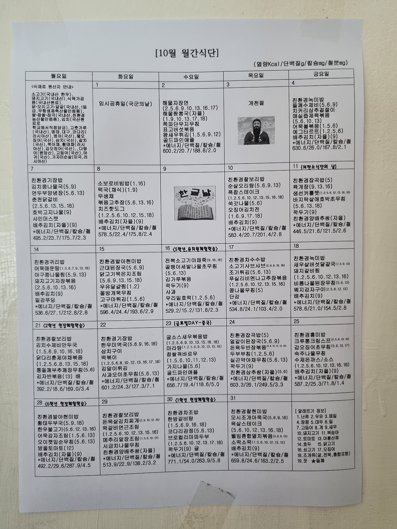 아침에 출근하면 그날의 식단표를 확인하는 것이 어느새 습관이 돼버렸다. 내가 좋아하는 음식이 나오면 급식 시간이 기다려지고 행복해진다. 식단표를 계속 들여다보는 아이들의 마음을 백 퍼센트 이해하게 된다. 이렇게 맛있는 음식이 나오는 급식을 우리 아이들이 잘 먹어서 다 키로 가면 좋겠다.
