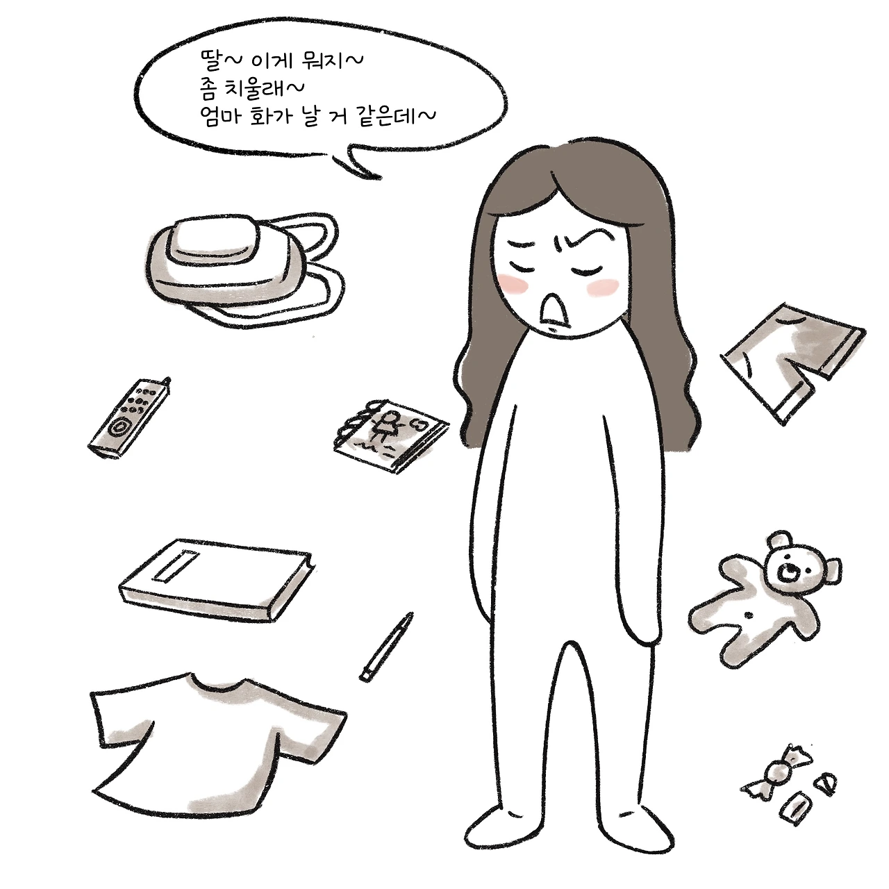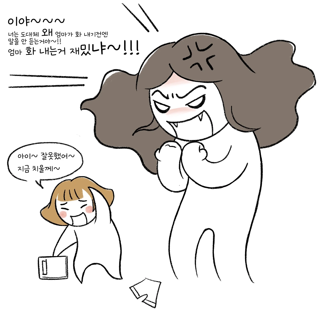 딸래미는 부드럽게 말하는 엄마의 말투가 재미없었는지, 우리 엄마 목청이 얼마나 큰 지 동네 사람들에게 들려주고 싶다며 엄마의 분노 버튼을 누르는 선택을 한다.