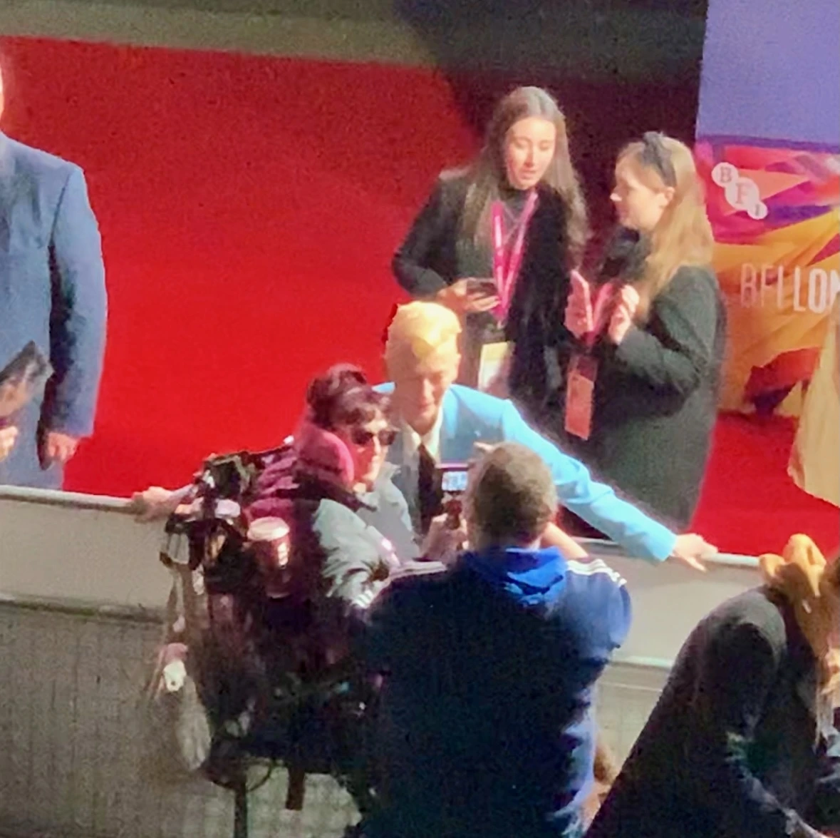 그렇게 여행을 마치고 서로의 숙소로 향했다. 숙소로 향하는 어느 계단을 올라가던 중 옆으로 포토월이 있는 행사장이 보였다. 그 포토월은 TV에서 보던 연예인들이 서서 카메라 플래시 세례를 받는 포토월 같았다. 혹시나 하는 마음에 계단 위에서 잠시 기다렸다. 약간의 시간이 지나고 정말로 연예인이 등장했다. 영화 [나니아 연대기]의 하얀 마녀, [어벤저스]의 에인션트 원 역할을 맡은 "틸다 스윈튼"이었다. 나중에 알고 보니 66회 런던 국제 영화제의 현장이었다. 우연히 마주쳐 더 신기했다.