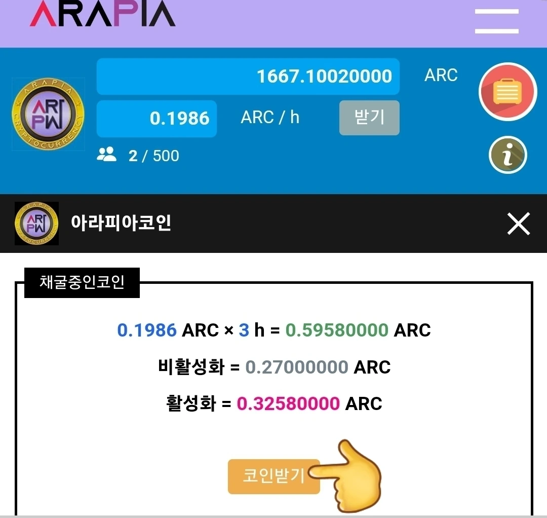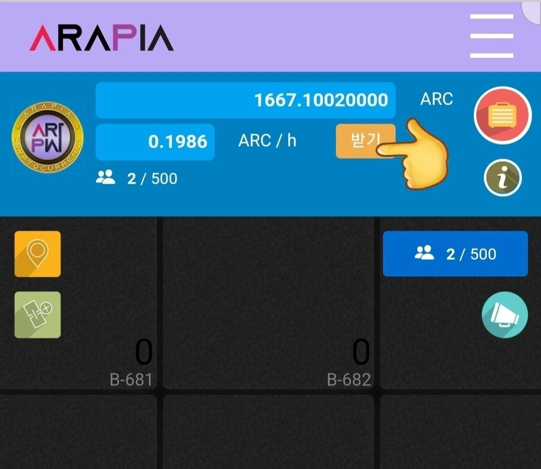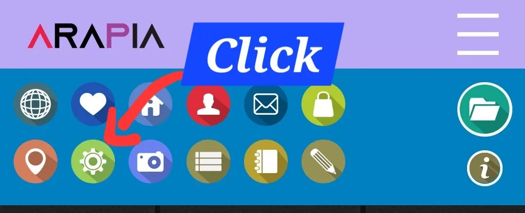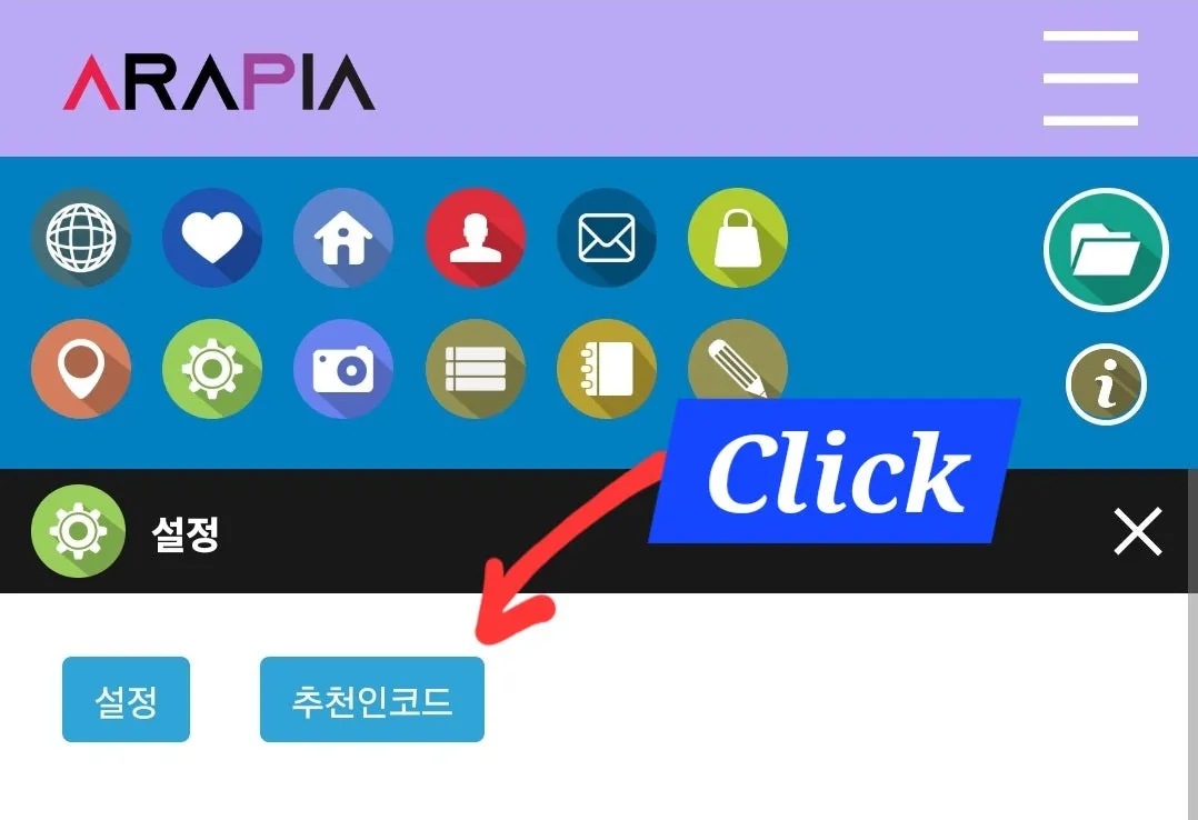 1.아라피아 메인화면에서 톱니바퀴 모양을 눌러주세요.