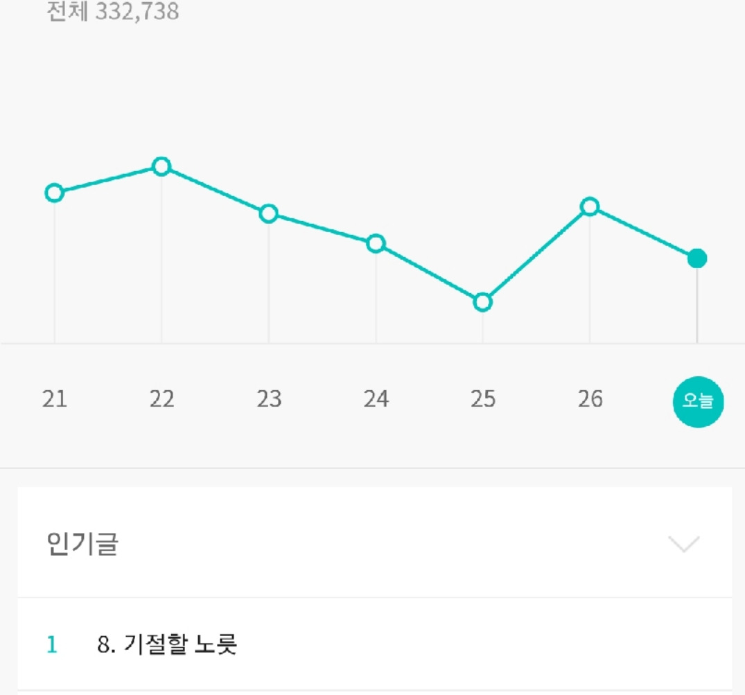 33만을 기록한 뒤 원래의 소박한 숫자로 돌아왔다. 인기글은 여전히 기절할 노릇.