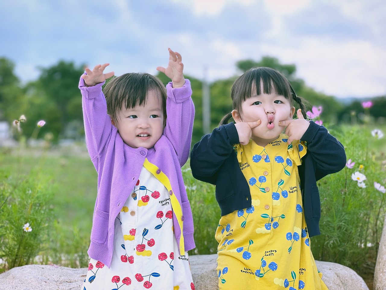 아이들이 지칠 때까지 뛰어놀다가 식당으로 향했다. 예상하지 못했던 브레이크 타임이 있었는데, 정확히 브레이크 타임 끝난 시간에 도착했다. 평소 밥을 많이 먹는 아이들은 아닌데 몸을 쓰며 놀았던 탓인지 숟가락을 놓지 않는다. 평소 맛집으로 유명한 식당인데 주말 저녁인데도 손님이 우리뿐이었다. 배가 불러 기분이 좋아진 조카와 함께, 조카가 좋아하는 노래를 메들리로 불렀다. 우리 아이는 양 볼에 밥풀을 가득 붙이고 노래를 따라 불렀다. 식사를 마치고 나와 식당 앞에 핀 코스모스를 바라보았다. 조카가 가장 좋아하는 '모두 다 꽃이야' 노래를 부르고, 꽃을 배경으로 가족사진을 찍었다. 가족들의 표정은 하나같이 해맑았다.