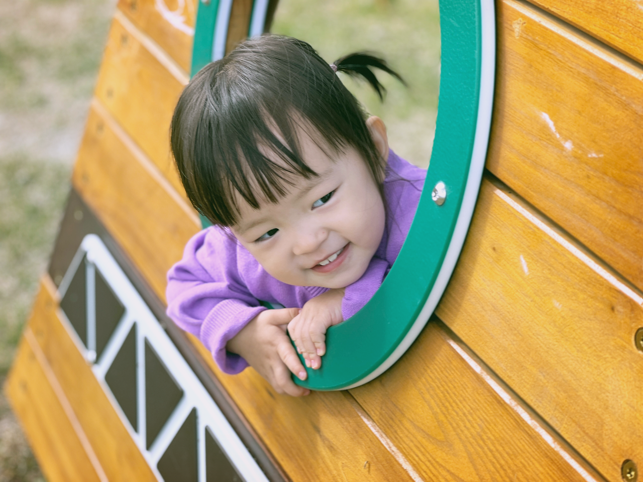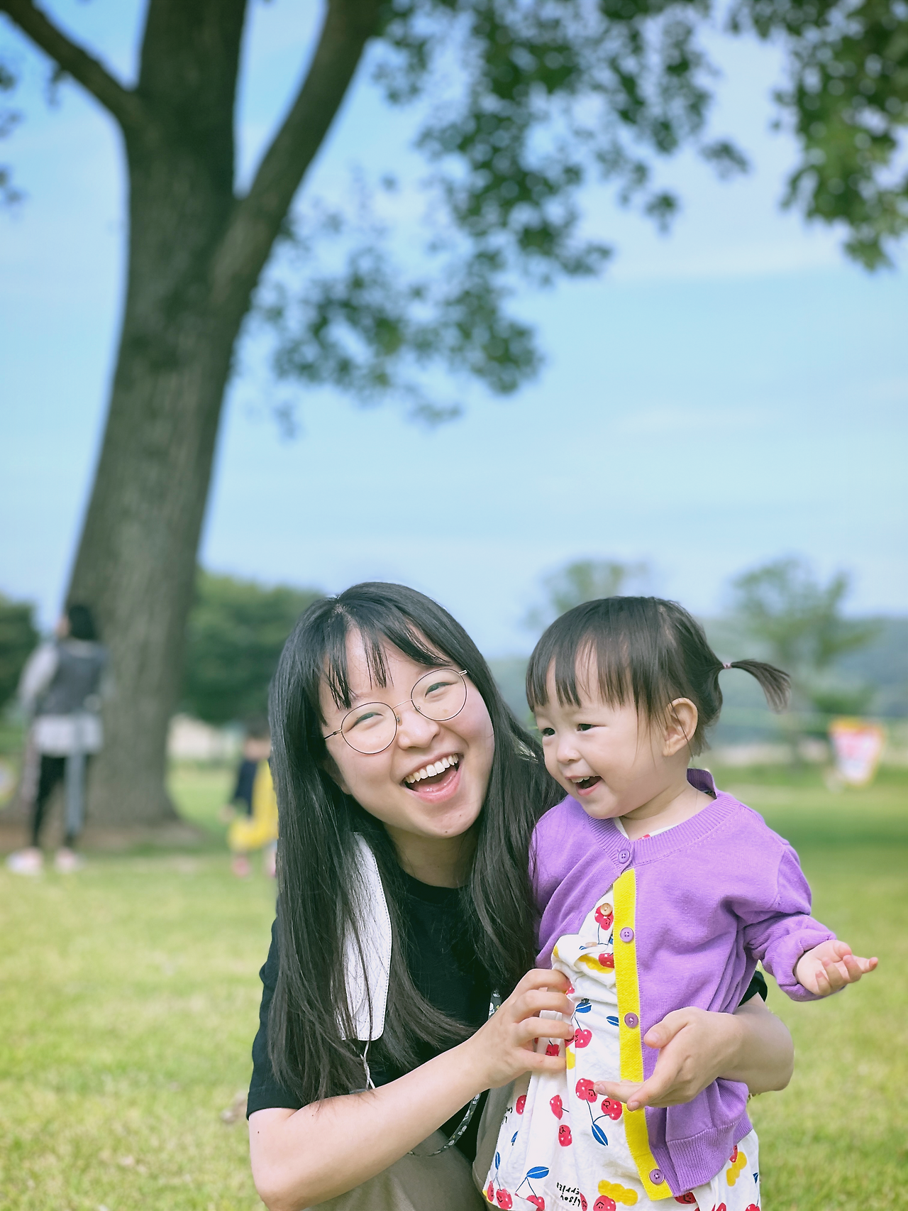 두 번째 코스는 길가에 있던 공원이었다. 큰 기대 없이 왔는데 의외로 큰 규모의 놀이터가 있어서 나도 아이들도 한껏 흥이 올랐다. 우리 아이는 양갈래 한쪽이 풀릴 정도로 신나게 몸을 흔들었고, 조카도 여러 놀이기구를 바쁘게 오갔다. 놀이기구 옆에는 커다란 나무들이 여럿 서있다. 이른 아침 내리던 비가 그치고 맑은 하늘에 커다란 구름들이 흐르고 있었다. 밝게 웃는 아이의 사진을 찍으며 놀다가, 잔디에 앉은 아빠에게 말했다.