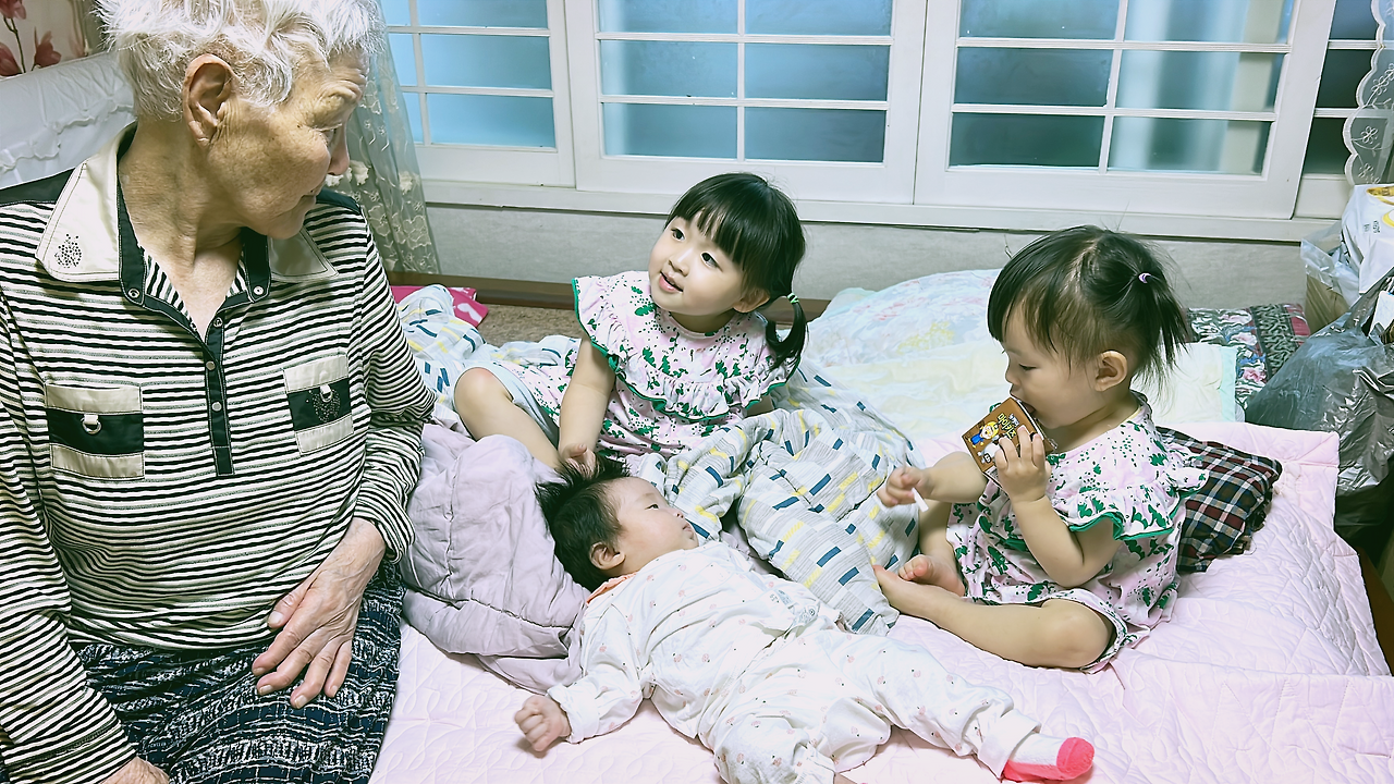 내가 친정에 있는 동안에는 집에 항상 사람이 북적였다. 우리 아기와 언니네 아기까지 함께 내려와, 항상 아기들이 시끄럽게 떠드는 목소리가 집을 채웠다. 할머니 눈에는 흐릿한 형태였겠지만 그것이 작은 발로 바지런히 움직이는 어린 아기였음을 짐작하셨나 보다. 그럼 할머니는 자신이 먹던 과자나 사탕으로 아이들을 꾀어낸다. 우리는 '할머니 그거 아기 주지 마!'라며 타박했지만 할머니는 못 들은 척 아기의 작은 손에 사탕을 쥐여준다. 그러면 아기들이 한참을 할머니 곁에서 서성이며 할머니의 액자 속 풍경을 시끄럽게 채운다.