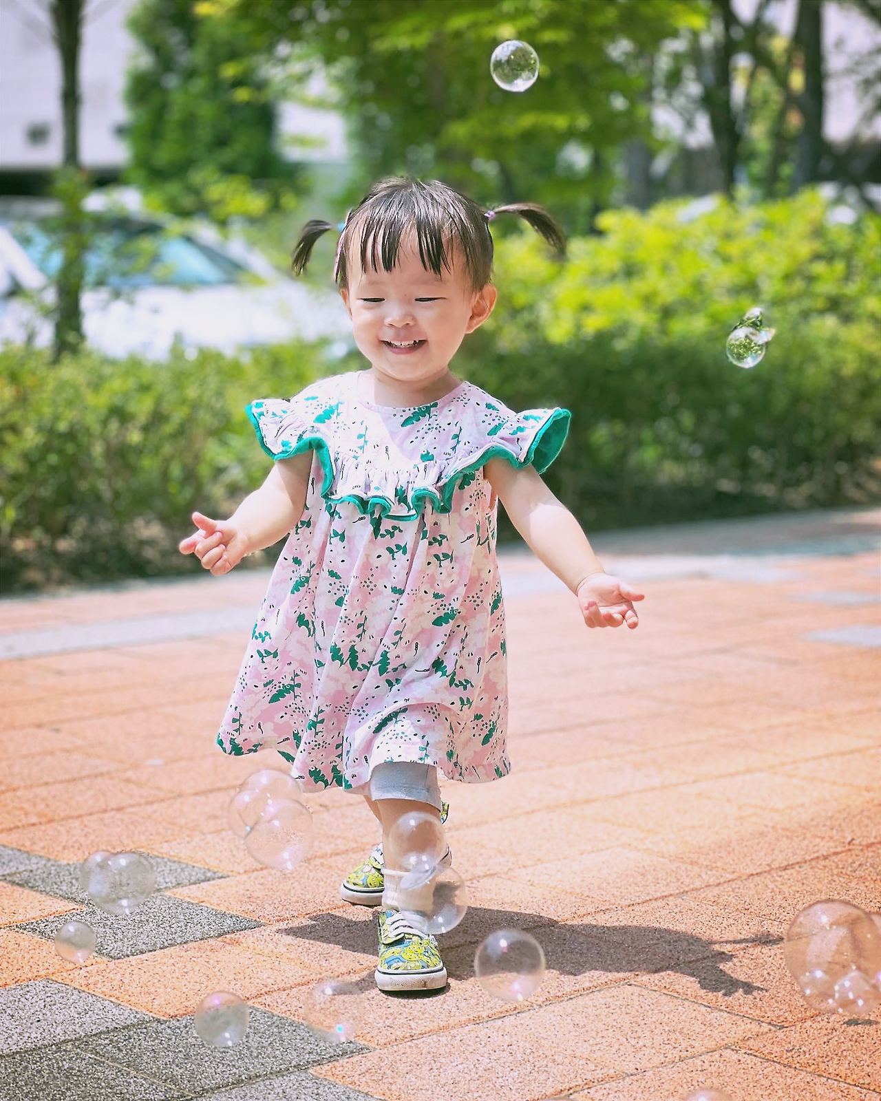 날씨가 좋다면 하원 후에 꼭 아파트 단지 한 바퀴 산책을 한다. 말이 산책이지 아이가 가는 대로 열심히 따라다니는 시간이다. 아이 뒤꽁무니 따라다니는 하루의 포인트라고 할 수 있다. 우리 아이는 길가에 핀 꽃이나 작은 돌멩이 줍기를 좋아한다. 맘에 드는 돌이 있으면 작은 손에 꼭 쥐고 한참을 걸어 다닌다. 놀이터에 가면 나와 비슷한 처지의 엄마, 아빠, 할머니들이 가득하다. 낯가림 심한 모녀라 넉살 좋게 먼저 다가가진 못하고 누군가 다가오면 안녕~ 하고 인사를 건넨다. 이제는 혼자 계단도 잘 오르내리지만 걱정 많은 엄마라 한시도 눈을 떼지 못하고 아이만 바라본다. 그러다가도 아이에게 계속해서 말을 걸어줘야 한다는 핑계로 이야깃꺼리를 만들기위해 맑은 하늘도 올려다보고, 저 멀리 지나가는 지하철도 구경한다. 아이를 만나기 전 나였다면 느끼지 못했을, 평화로운 풍경들이다.